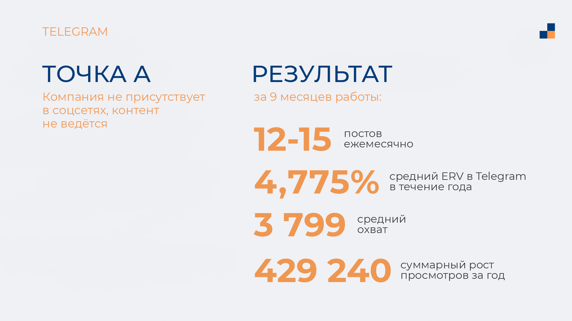До нас компания не вела соцсети. Коллеги выбрали SMMEKALKA, чтобы выстроить коммуникацию с нуля, превратить соцсети в инструмент доверия, узнаваемости и точку контакта с закупщиками в нише, где конкуренты почти не используют контент-маркетинг и рекламу.