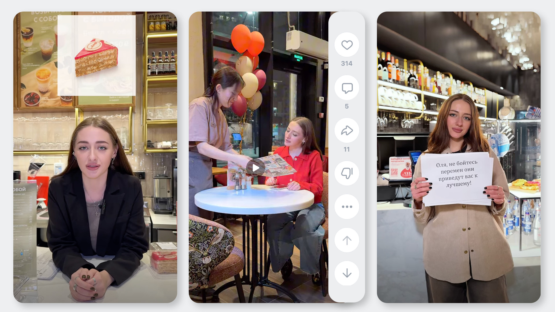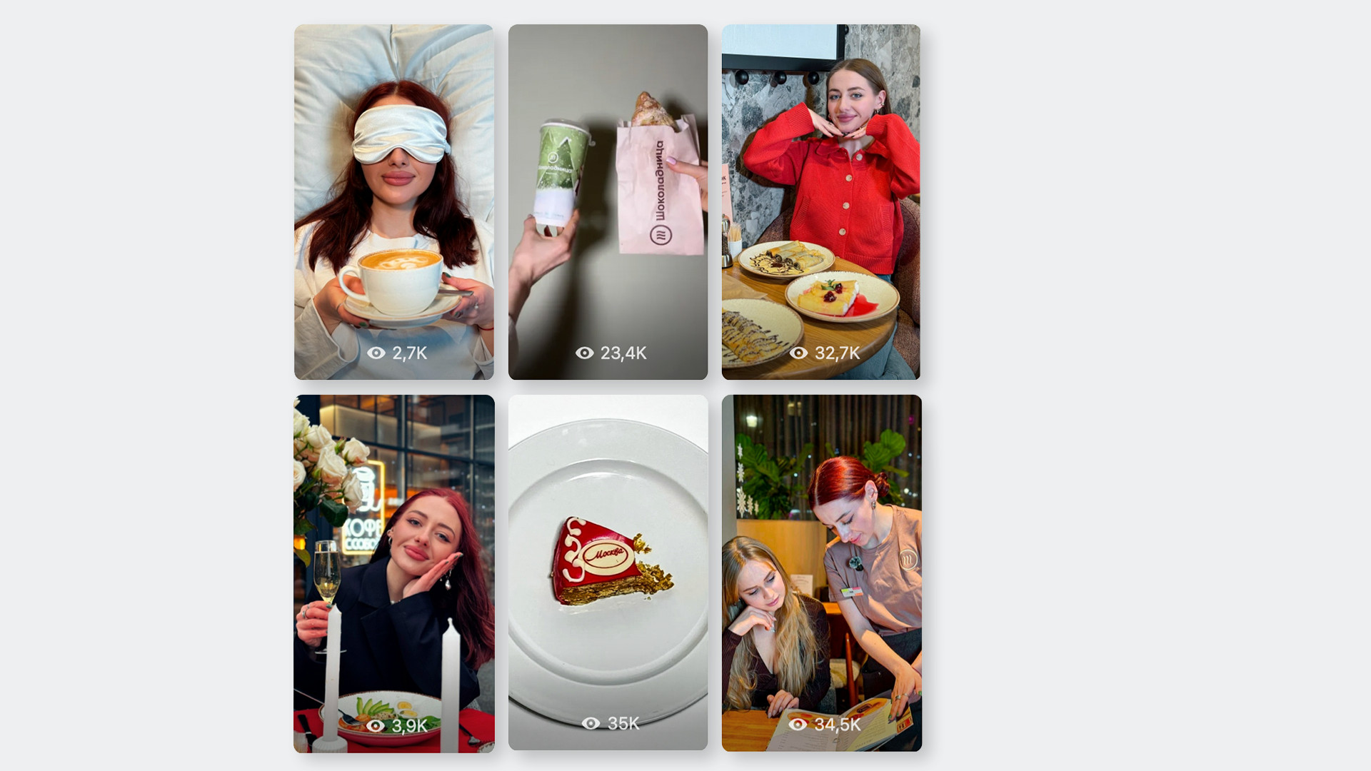 На старте мы адаптировали контент под действующую маркетинговую стратегию бренда, сохранив прежние рубрики и подачу. Через несколько месяцев участвовали в формировании новой стратегии позиционирования: добавили акценты на современные визуальные и контентные форматы, пересмотрели структуру рубрик. На этапе разработки контент-стратегии вместе с клиентом мы ввели персонажа бренда — образ сотрудницы сети по имени Ксюша, которая стала своего рода лицом «Шоколадницы» в соцсетях. Зачем это было нужно? Во-первых, присутствие постоянного героя упростило и ускорило производство контента: мы получили понятную визуальную точку опоры для всех съемок. Во-вторых, благодаря Ксюше контент стал более человечным и живым — у бренда появилось «лицо», с которым аудитория могла ассоциироваться. Это решение придало единство стилю и значительно сократило время на согласование материалов, потому что и команде, и клиенту было проще работать с понятным образом. Ксюша быстро превратилась в магнит для внимания: аудитория больше вовлекалась в ролики и истории, где присутствовала девушка. Вовлеченность в Reels с её участием стабильно выше, чем в других форматах контента. Также мы заметили рост интереса к Stories: Эти цифры подтверждают, что появление постоянного персонажа укрепило связь с аудиторией и повысило её интерес к контенту. Мы выстроили систему рубрик, чтобы закрывать разные сценарии потребления контента: новинки меню для тех, кто ищет повод заглянуть, лайфстайл-посты для создания атмосферы, истории гостей для доверия и вовлечения. Контент-план включал несколько ключевых направлений: Такое сочетание рубрик позволило поддерживать стабильный темп публикаций и разнообразие тем. Каждая рубрика отвечала за конкретный «момент контакта»: от быстрого внимания в Reels до вовлеченных дискуссий в Telegram. Благодаря этому образ бренда складывался естественно и удерживал внимание подписчиков. Отдельного внимания заслуживает формат Reels — короткие видео, которые мы активно внедрили в VK и Instagram. Мы сделали ставку на Reels, потому что для молодой аудитории это привычный формат: короткие видео легко подхватываются алгоритмами и сразу попадают в ленты потенциальных гостей. За 6 месяцев работы мы сняли 65 Reels для этих платформ, превратив аккаунты «Шоколадницы» в динамичные медиа-каналы. Что мы показывали в Reels? Большинство роликов строилось вокруг Ксюши. Через Reels мы показывали Шоколадницу в ситуациях, близких аудитории: Такой визуальный ряд формировал ассоциацию с повседневной привычкой Какие темы «зашли» лучше? Легкие и знакомые сюжеты — юмористические зарисовки, узнаваемые ситуации из жизни гостей, участие Ксюши в популярных челленджах. Эти Reels активно комментировали и пересматривали. Чуть более слабый отклик получали откровенно рекламные ролики без истории. Продвижение продукта тоже должно быть облечено в интересный сюжет или подачу. Рост вовлеченности. Присутствие персонажа в Reels позитивно сказалось на метриках вовлеченности. ERR (уровень вовлеченности относительно охвата) по роликам с Ксюшей стабильно превышал ERR обычных постов. Для клиента это означало не только охваты, но и прирост живой аудитории. Активная работа с аудиторией в комментариях и сообщениях стала неотъемлемой частью SMM. Комьюнити-менеджмент выполнял две задачи: В Telegram-канале модерирова