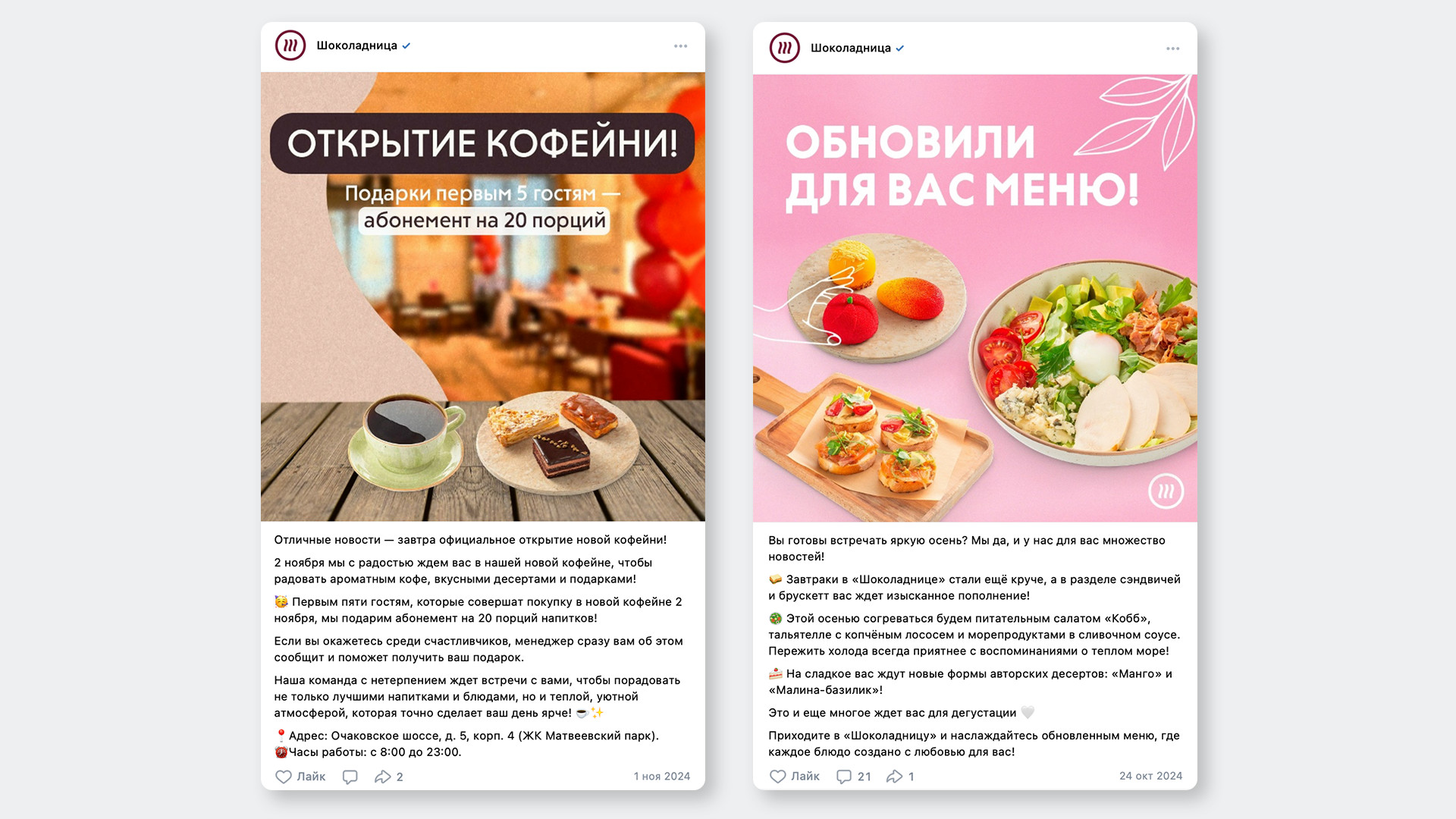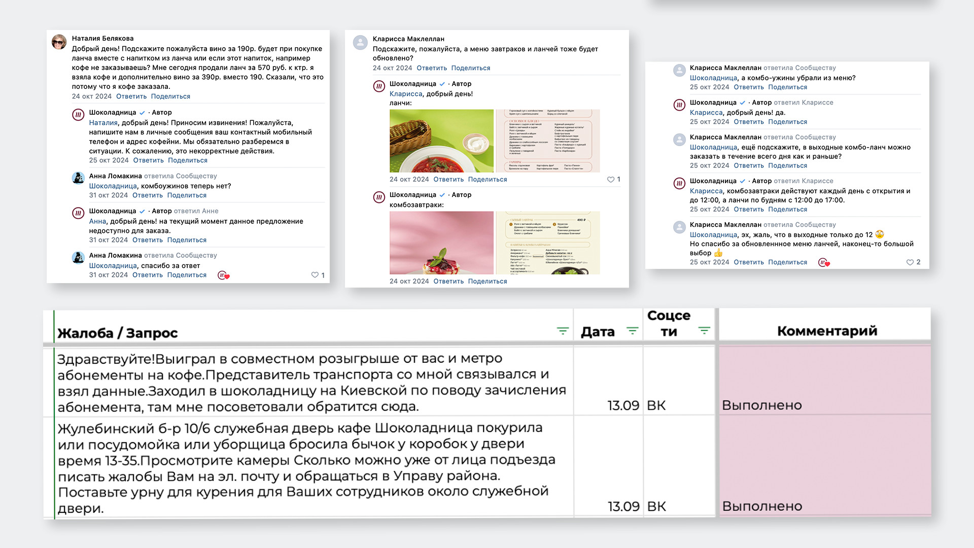 «Шоколадница» — одна из самых узнаваемых сетей кофеен в Москве с богатой историей и широкой аудиторией. У бренда сильная узнаваемость и лояльная база гостей, но соцсети работали скорее как формальное присутствие.