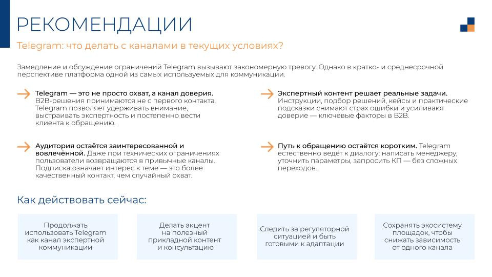 - Продолжать вести канал как экспертный: регулярно, с прикладным контентом, который закрывает реальные вопросы аудитории.