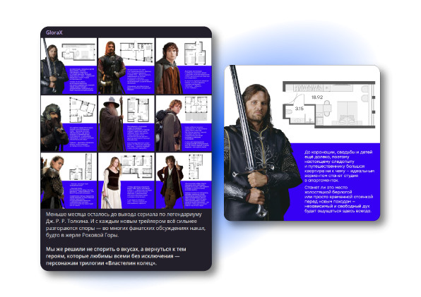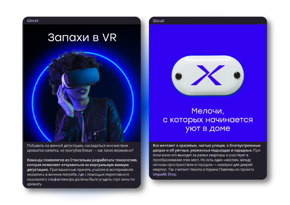"GloraX был одним из первых наших клиентов, которые после закрытия некоторых соцсетей решили сфокусироваться на развитии своего телеграм-канала. С учетом всех оставшихся способов коммуникации, это был самый логичный ход — именно телеграм позволяет транслировать всю необходимую информацию в официальном источнике, и продвигать ее: как с помощью посевов, так и в собственном рекламном кабинете платформы. Целевой аудиторией канала мы определили молодых, разделяющих осознанный подход к жизни, людей, живущих с ясным планом развития и себя, и среды вокруг — с точки зрения выбора места для жизни в том числе. Они любят активный отдых и интересные нестандартные форматы досуга: серфинг, лыжный спорт, хайкинг. Посещают актуальные выставки и мероприятия в культовых местах. В общих чертах, это люди, которые разделяют актуальный тренд на технологичность, цифровизацию, уход от условно скучных способов потребления информации. Требовательные к качеству сервиса в любой сфере жизни, и его удобства. С учетом такого бэкграунда, фокус в контенте телеграм-канала был сделан на трансляцию ценностей компании, связанных как раз с последними достижениями технологий — в виде образовательно-полезного контента, и на гармоничную увязку этих тематик с подходом компании: и с позиции строительства жилых комплексов, обеспеченных всем необходимым и даже больше (одни только сенсорные сады чего стоят!), и с позиции именно сервиса — то, как ведется общение с покупателем, как происходит сделка и ее дальнейшее сопровождение, и многое другое. Таким образом, в производстве контента мы придерживаемся гармоничного распределения его на типы: четко определенный объем по имиджевому, продуктовому, развлекательному контенту. И что особенно важно — остаемся верны живому, человеческому tone of voice, который позволяет и сохранить легкий диалог с аудиторией, и донести до нее даже сложную информацию в удобном и понятном виде. Результатом сегодня является четкое встраивание в те форматы контента, которые решают актуальные задачи нашего клиента, и устойчивый рост вовлеченной, заинтересованной аудитории." "Совместно с SocMediaMarketing нам удалось разработать выгодное для нас позиционирование и занять свою нишу в социальных сетях. В то время, как большинство застройщиков используют избитые приемы, рассказывают про архитектуру и дизайн помещений, у нас получилось отстроиться от общей массы однотипного контента. Тему высоких технологий мы определили для себя как приоритетную. Рассказывая подписчикам о сервисе «умный дом», новинках в сфере VR и AR, разработках в области искусственного интеллекта, с одной стороны, мы выпускаем интересный, познавательный контент, который увлекательно читать, с другой стороны, ненавязчиво проводим смысловые параллели с высокотехнологичными решениями, которые сами используем, таким образом подчеркивая преимущества нашего продукта. Вместе с тем, несмотря на то, что мы сделали ставку на высокие технологии, они не являются для нас самоцелью, скорее, это необходимый элемент гармоничной жилой среды. В центре нашего внимания всегда находится человек, поэтому в наших соцсетях мы также активно развиваем UGC-контент, рассказывая, как живут люди в наших проектах. Оригинальности нашему каналу добавляют яркие, смелые и даже в какой-то степени провокационные визуалы, на