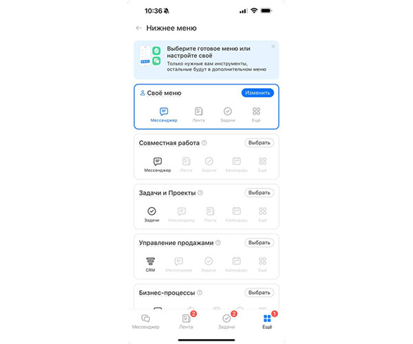 возможности индивидуальной настройки меню. Вы сами выбираете, какие блоки для