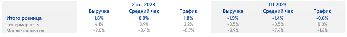 года в результате закрытия магазинов малых форматов в 1 полугодии 2023 года. Несмотря на то,