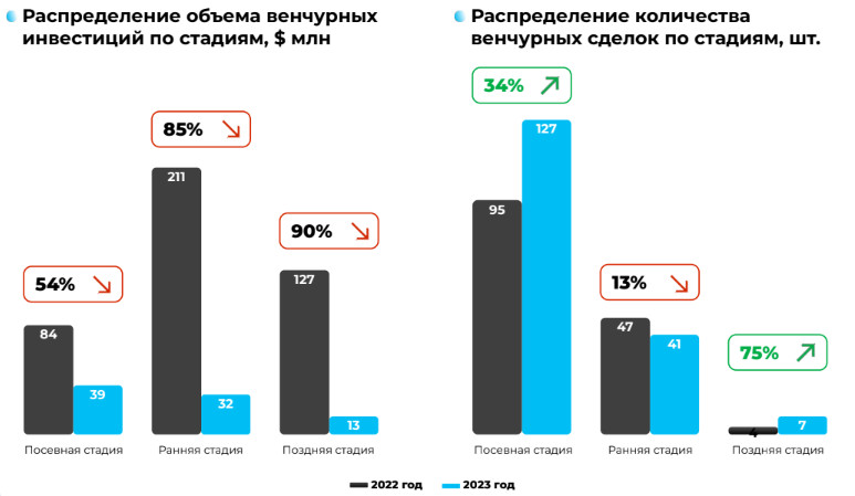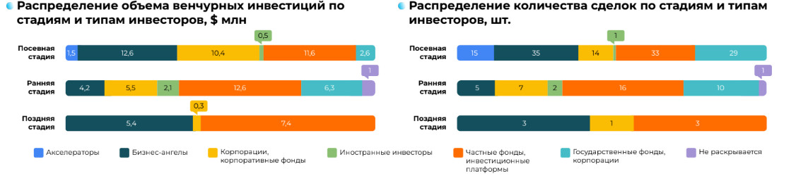 Было совершено 175 сделок, из которых 73% было совершено со стартапами посевных и предпосевных стадий.