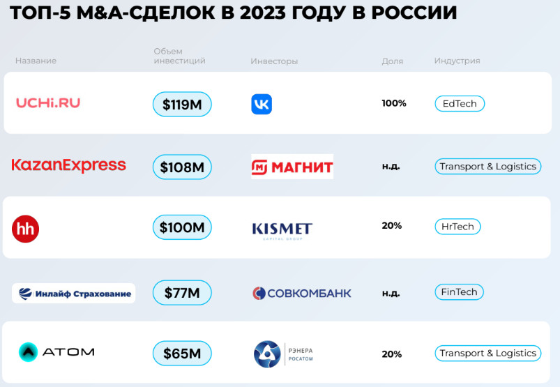 Каждая четвертая сделка была совершена при участии государственных фондов. Иностранных инвестиций практически нет. В 2023 году зафиксировано всего три сделки с российскими стартапами, которые привлекли инвестиции от иностранных инвесторов, что на семь сделок меньше, чем в 2022 году.