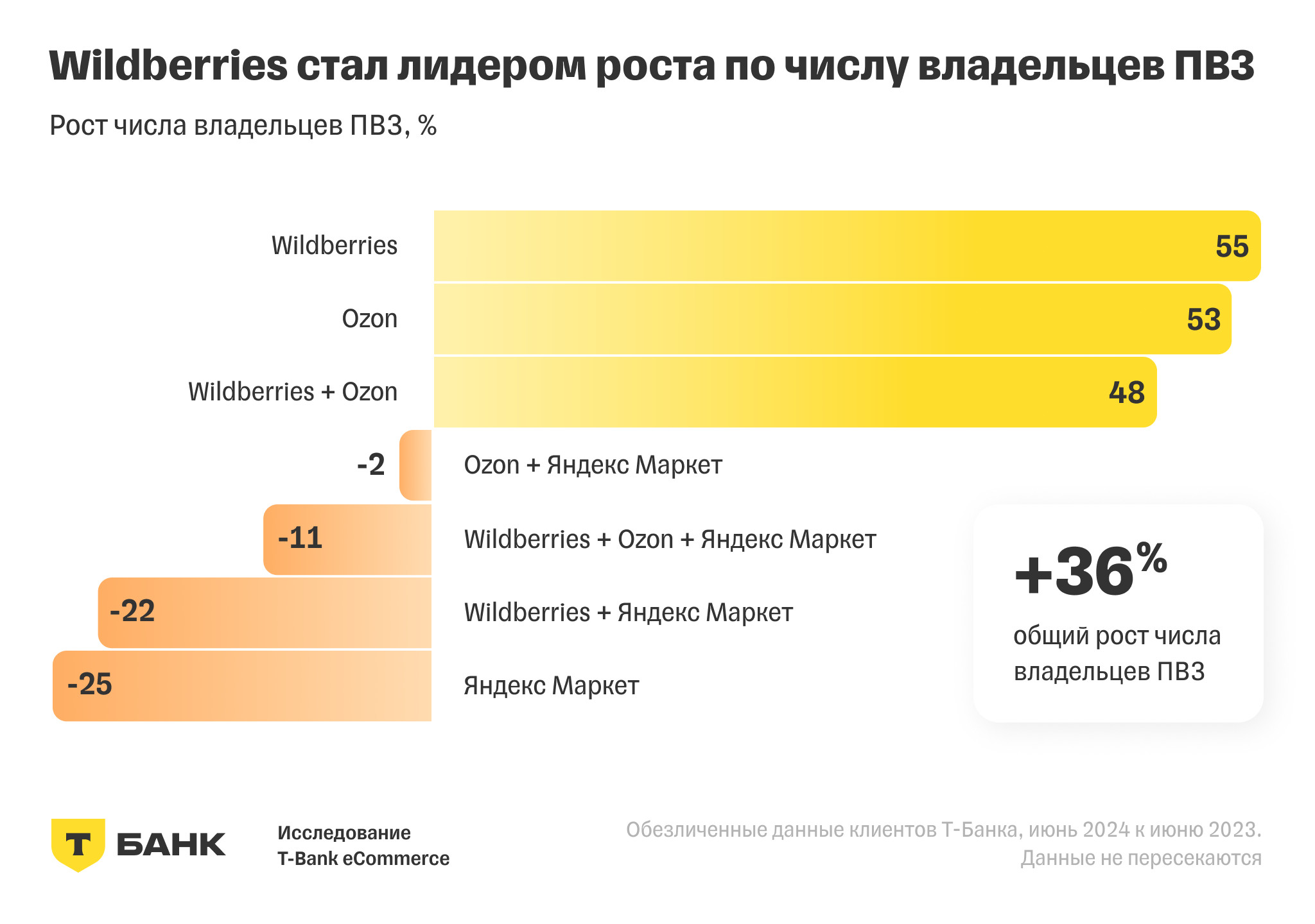 Обороты владельцев пунктов выдачи заказов Wildberries выросли почти в два раза. Это лучший показатель среди агентов ПВЗ различных маркетплейсов, говорится в исследовании T-Bank eCommerce.