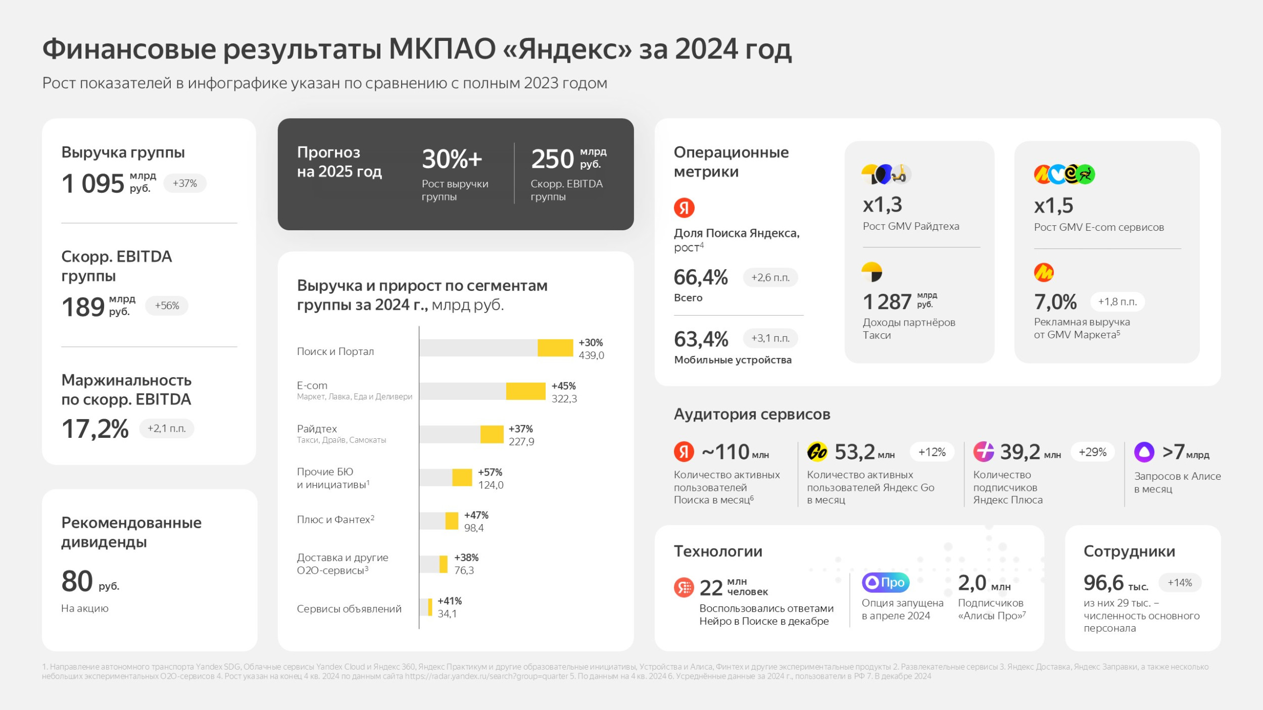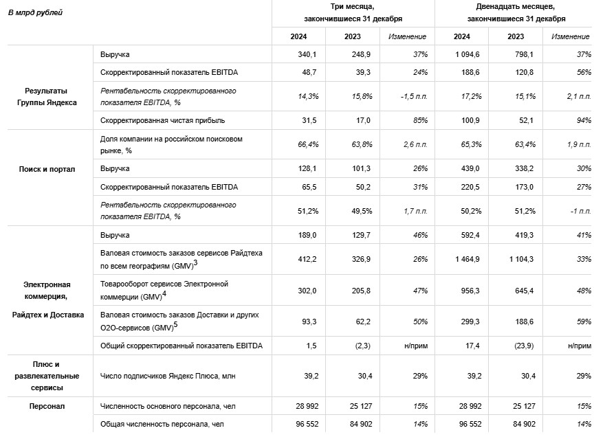 Яндекс объявляет финансовые результаты за IV квартал 2024 года и 2024 год