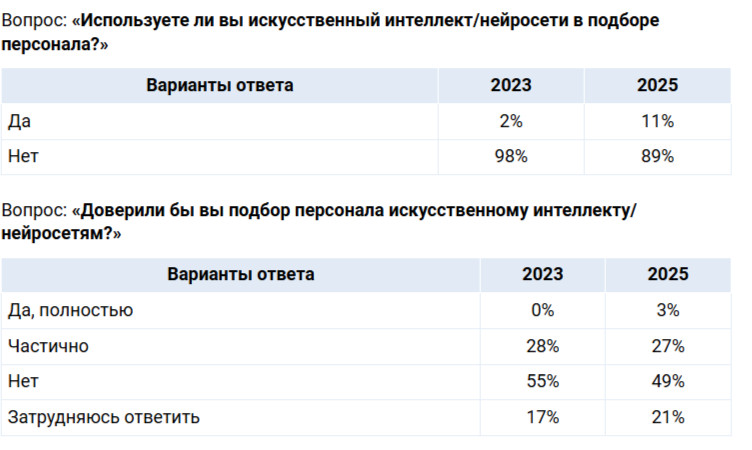 В последние годы наблюдается активное проникновение технологий искусственного интеллекта в различные отрасли, включая сферу управления персоналом. Увеличивается доля работодателей, применяющих нейросети в рекрутинге (рост на 9% за последние полтора года).