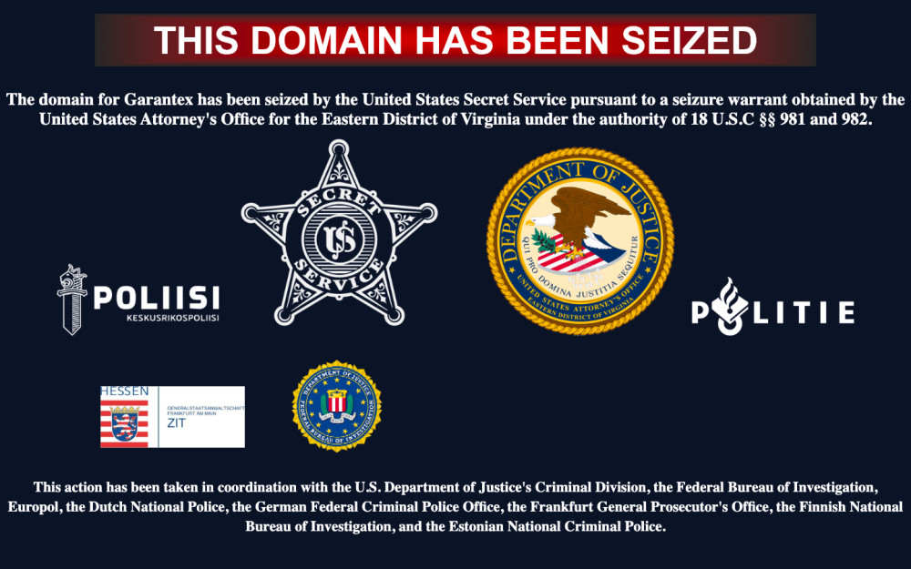 В уведомлении об удалении, с которым ознакомился TechCrunch, говорится, что операция проводилась в сотрудничестве с Министерством юстиции США, Федеральным бюро расследований, Европолом, Национальной полицией Нидерландов, Федеральным управлением уголовной полиции Германии (Bundeskriminalamt или BKA), Генеральной прокуратурой Франкфурта, Национальным бюро расследований Финляндии и Национальной уголовной полицией Эстонии.