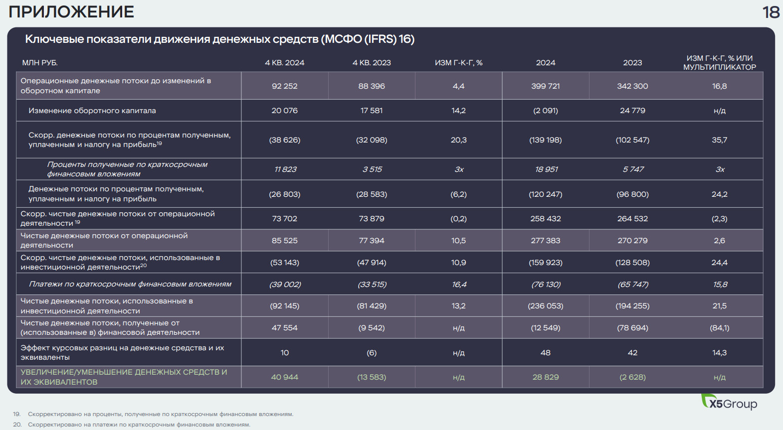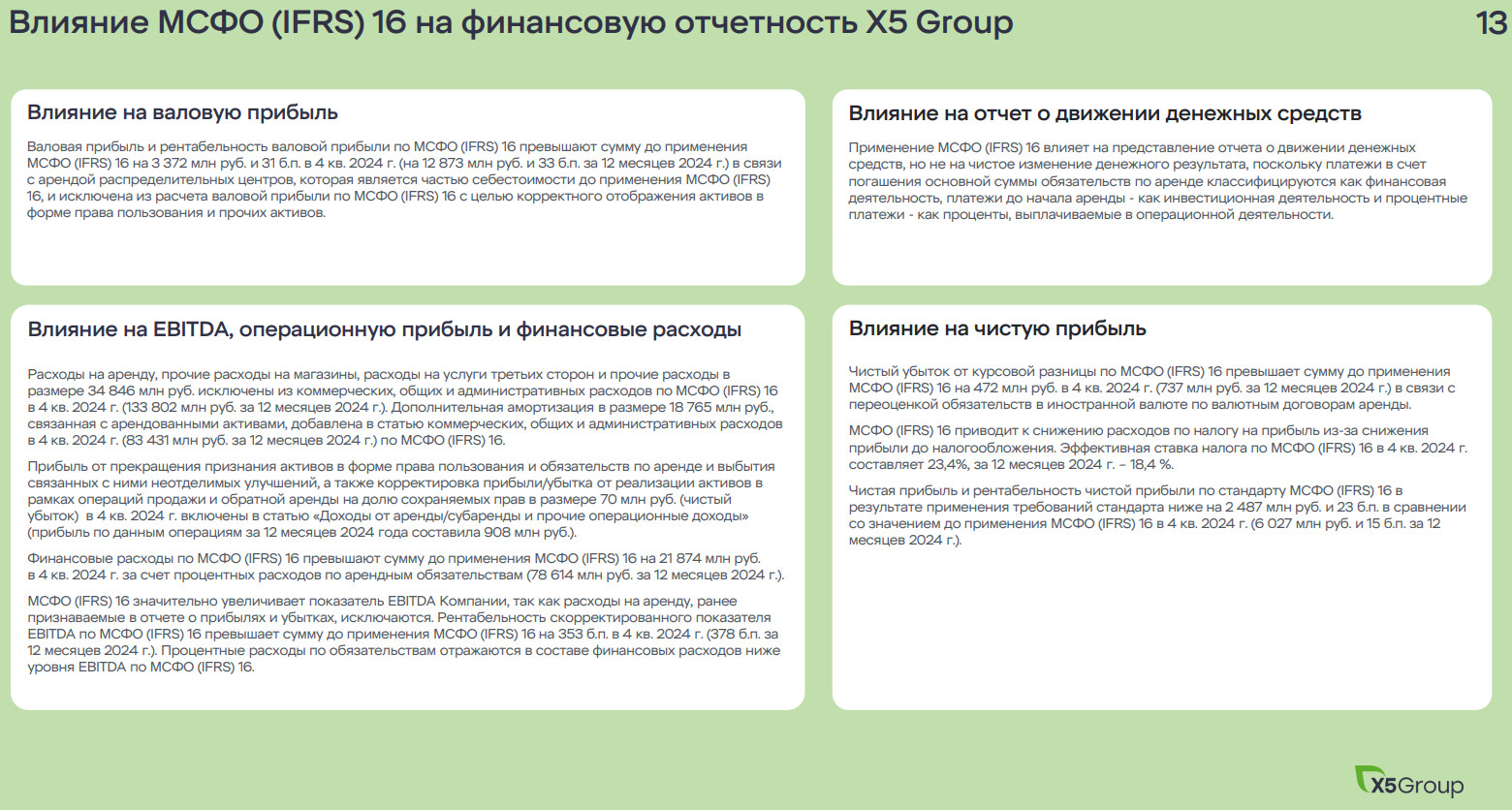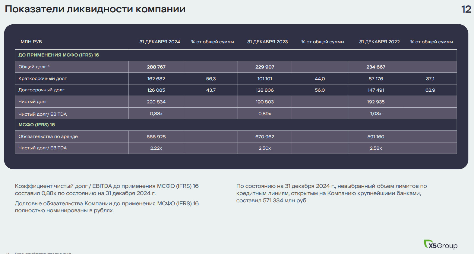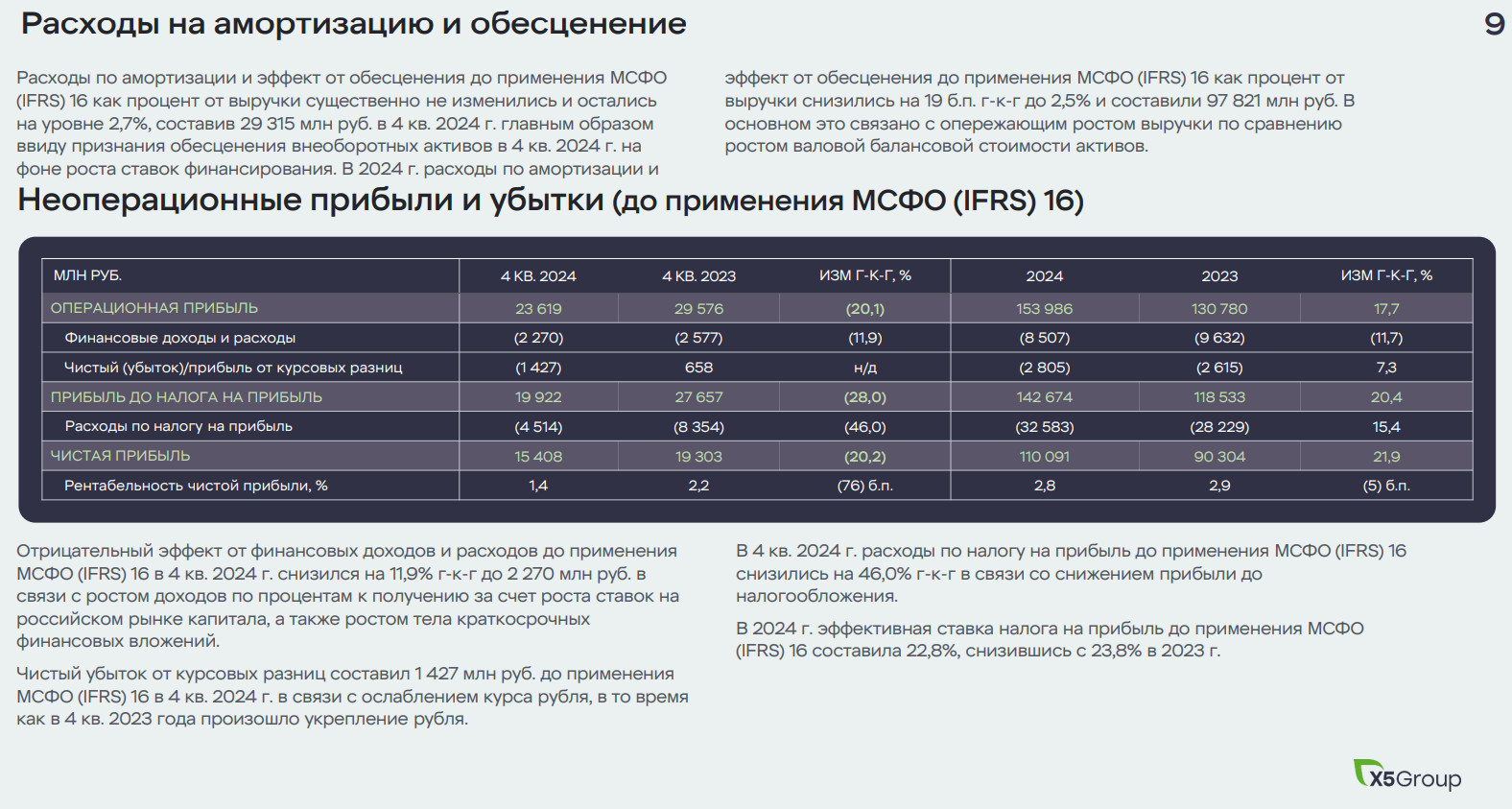 Выручка компании за 2024 год составила 3 908 047 млн руб., EBITDA до применения МСФО (IFRS) 16 составила 251 807 млн руб., а чистая прибыль до применения МСФО (IFRS) 16 составила 110 091 млн руб.