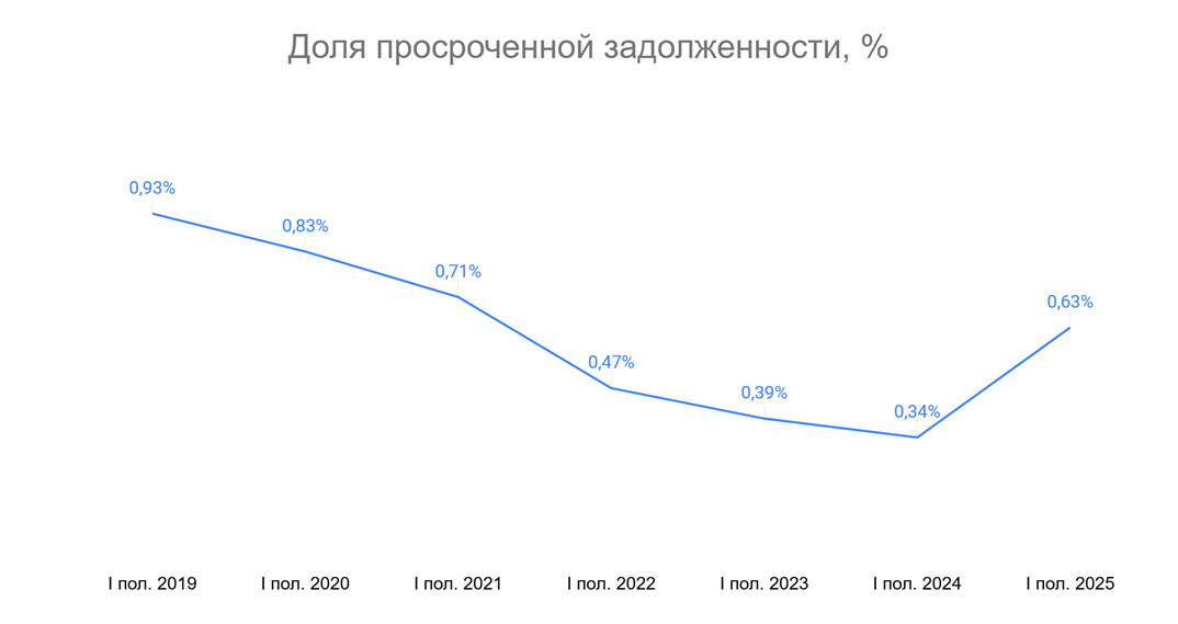 составил 0,34%. Увеличение доли просроченной задолженности возобновилось в 2025