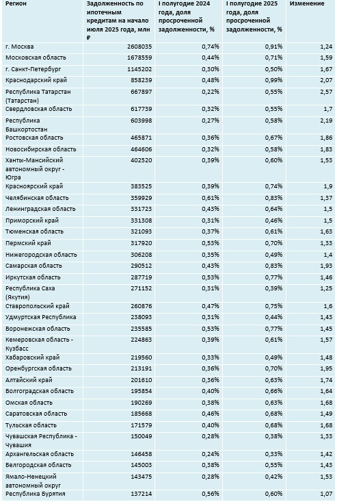 Доля просроченной задолженности выросла во всех, за исключением одного, регионах России. Объем же просроченной задолженности к июлю 2025 года достиг рекордного значения — 145,2 млрд рублей, за год он вырос более, чем в два раза (с 69,1 млрд рублей в июле 2024 года).