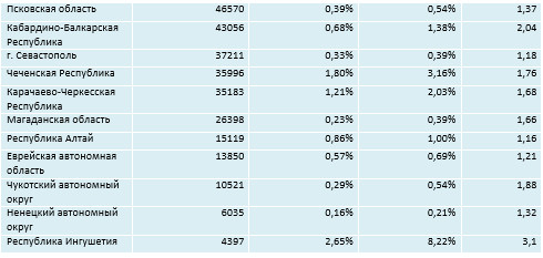 Республика Ингушетия, в этих регионах показатель вырос в три с лишним раза. В