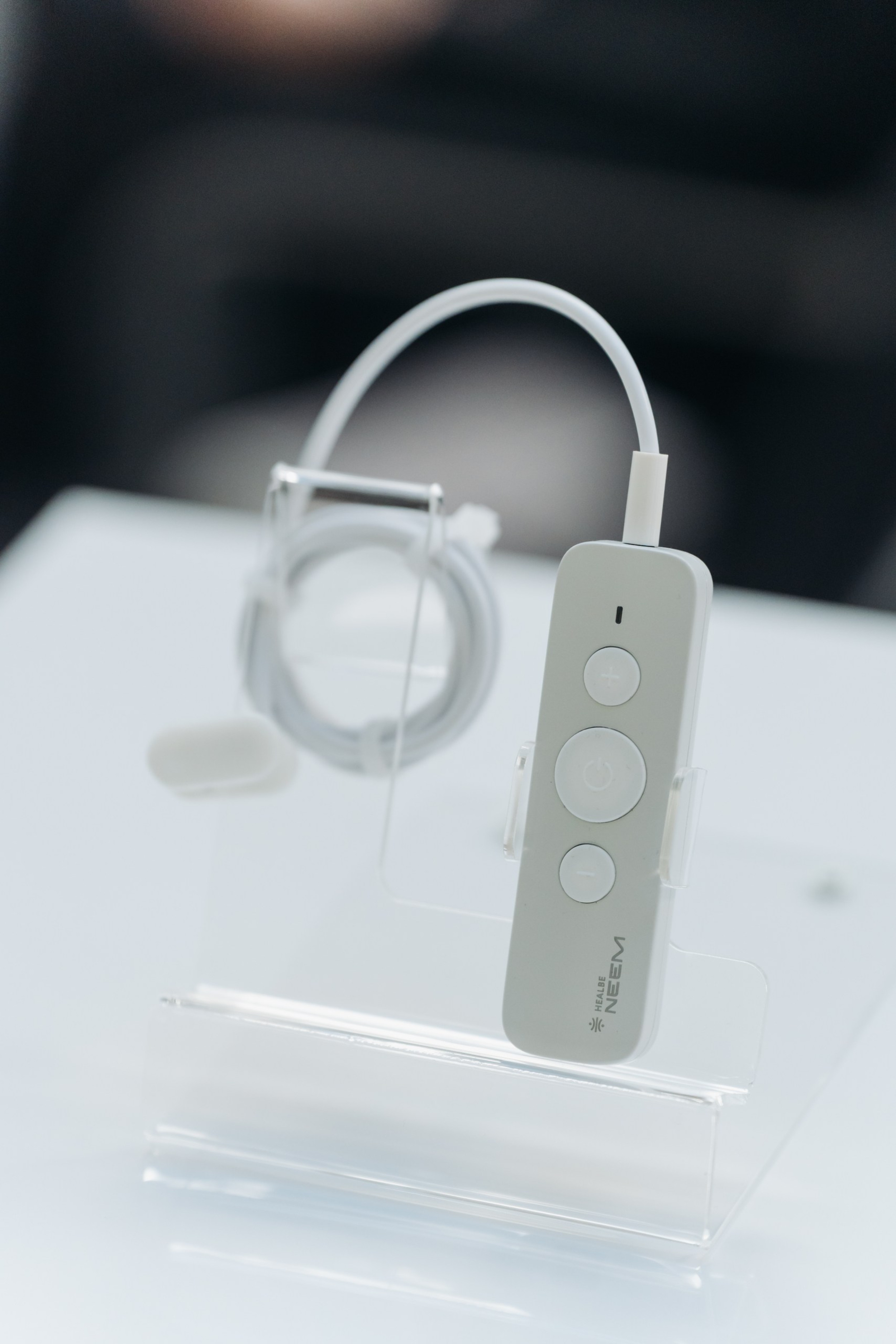модуль с кабелем и клипсой‑электродом, фиксируемой на козелке левого уха. Neem реализует принцип чрескожной