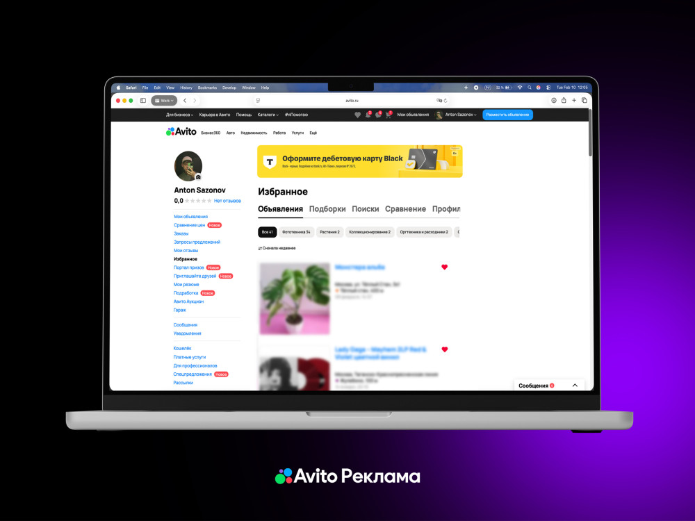 Новый баннер показывается пользователям Авито в их личных профилях и отличается высокой заметностью. Это единственный рекламный формат, который доступен в «Избранном», поэтому аудитория сразу его заметит.