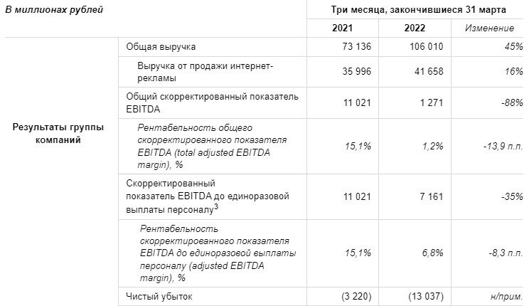 Яндекс объявляет финансовые результаты за I квартал 2022 года