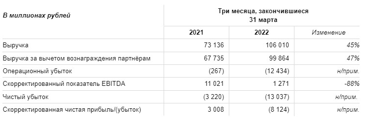 До 23 февраля 2022 года мы демонстрировали значительный рост в большинстве наших направлений. За последние пять недель первого квартала на деятельность некоторых наших направлений негативно повлияли геополитические события, что отразилось на результатах за весь первый квартал.