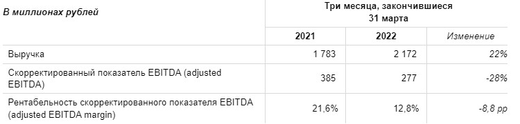Ключевые финансовые и операционные показатели за I квартал 2022 года.