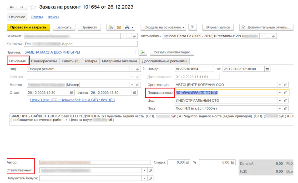 Еще одна частная проблема была связана с тем, как заполнялись заявки на ремонт в 1С. Например, вместо того чтобы указать конкретного сотрудника СТО, который отвечает за заявку, система часто записывала название подразделения, как будто это человек. Это путало и мешало понять, кто именно должен заниматься клиентом. Сама заявка могла быть создана не только мастером сервиса, но и автоматическими системами вроде колл-центра или АТС.