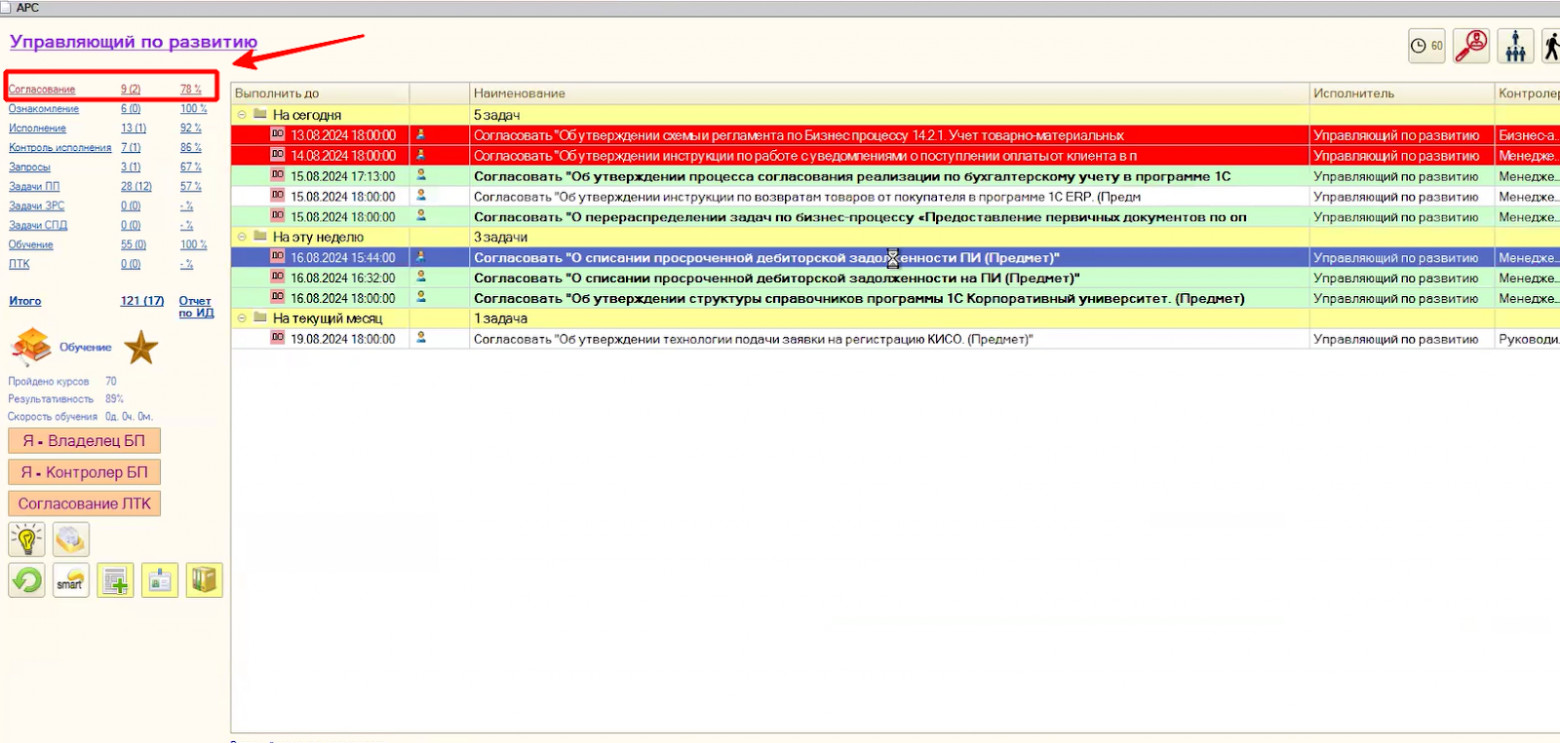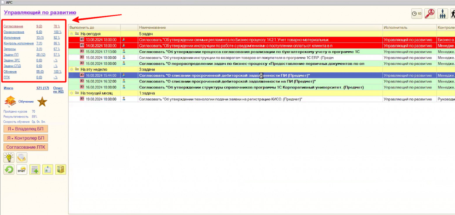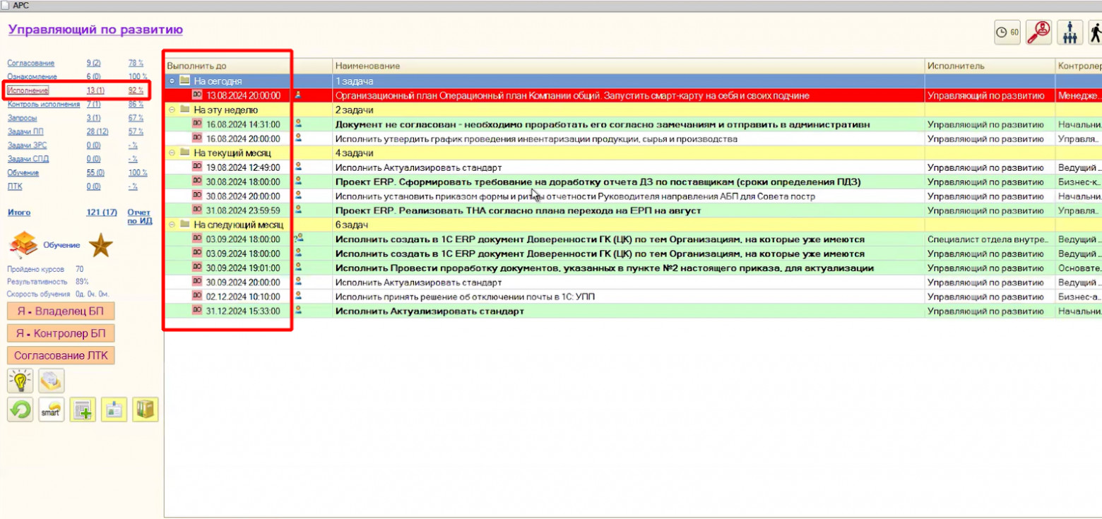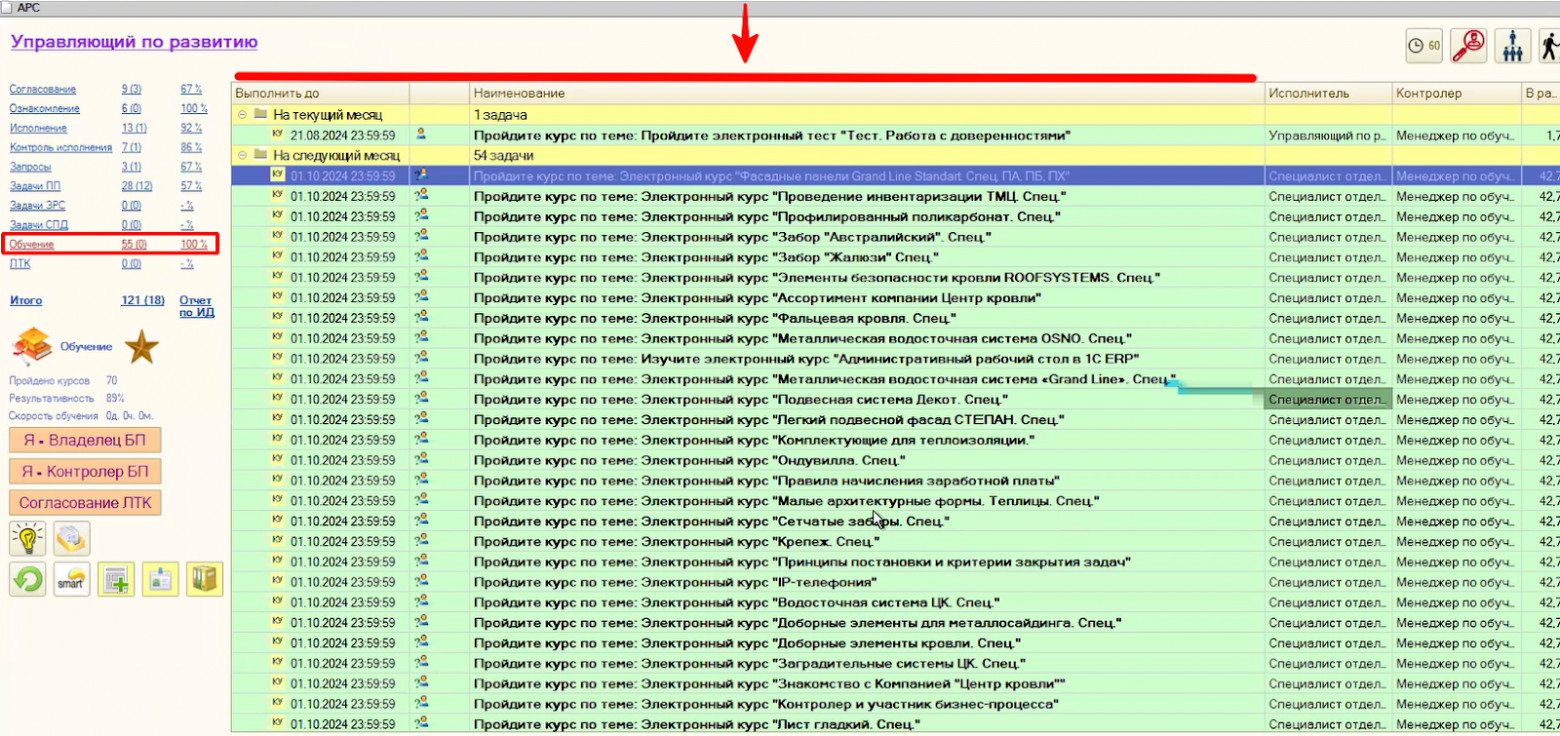 «Центр кровли» — официальный дилер брендов «Технониколь», Knauf, Onduline. В ассортименте — металлочерепица, сайдинг, изоляция, поликарбонат и др. Компания предоставляет комплекс услуг: расчёт, распил, упаковка и доставка. Около 10 лет назад стала очевидной проблема, которая знакома 99% крупных бизнесов: коммуникация между сотрудниками часто ломалась, информация искажалась, единой системы управления и контроля задач не было, что сильно замедляло работу и увеличивало число ошибок. Например, срок согласования приказа или распоряжения мог доходить до 2 месяцев! Документ мог долго путешествовать между согласующими, и даже найти его было непросто. Вот еще один смешной и одновременно грустный пример: у сотрудников был популярен такой способ обмена информацией, как «Отправка по факсу». Думаете, это настоящий факс? Нет, это совсем другое: заявления и другие документы на подпись просто подбрасывались под дверь специалиста, если его не было в кабинете. В то время основными способами общения внутри компании были электронная почта и телефон. Но даже в использовании почты были проблемы: например, в одной из инструкций было написано, что руководитель должен дважды в день проверять почту, чтобы не забывать следить за документами. Пришло время для перемен. Компания решила внедрить новый инструмент, который должен был решить все эти проблемы и сделать коммуникацию более простой и эффективной. Ниже мы подробно расскажем, как это происходило. Роман Викторович Безматерных, учредитель и генеральный директор ГК «Центр Кровли», взял на себя сложнейшую задачу — разработать ИТ-стратегию для компании. Ее основой стала комплексная автоматизация на базе 1С. Это был настоящий вызов, ведь опыта в этом у него не было. Но Роман не испугался трудностей. Он сам изучил систему, посетил учебные центры 1С и Битрикс в Москве, а затем тщательно разработал политику, принципы и архитектуру IT-системы компании Ключевое требование новой стратегии — управление задачами должно происходить в одном окне. Почему это было важно? Представьте, что каждый сотрудник компании будет иметь доступ к своему рабочему столу, на котором можно выполнять все задачи: от самых мелких вроде выдачи справки до крупных вроде подготовки полного пакета документов для b2b-покупателя. Это значит, что все необходимые инструменты и функции собраны в одном месте, и нет необходимости переключаться между различными программами. Такой подход имеет несколько ключевых преимуществ: Новый инструмент решили назвать «Административный рабочий стол» (сокращенно — АРС). Он должен был не только значительно улучшить внутренние процессы, но и наладить более удобное взаимодействие между сотрудниками. Но путь до него был долгим, сложным и интересным. Всё началось с определения основных требований к новому функционалу. Их также сформулировал Роман. Система должна быть быстрой, позволять возвращать задачи на предыдущий этап, позволять погрузиться в детали каждой задачи, отслеживать историю исполнения и удовлетворять некоторым другим управленческим требованиям. Техзадание для программистов разрабатывала управляющий директор по развитию Елена Сергеевна Борозняк вместе с руководителем направления автоматизации и бизнес-процессов Юлией Александровн Кравцовой. Но как же они поняли, как должна выглядеть и работат