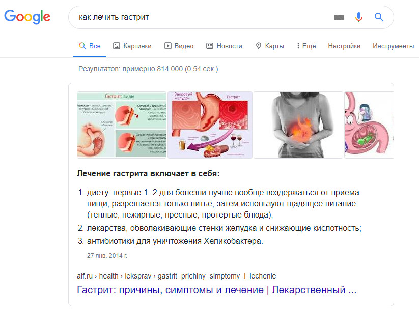 После прочтения популярного фрагмента, искатель может прийти к выводу, что ему необходима консультация врача по приёму антибиотиков по уничтожению Хеликобактера.