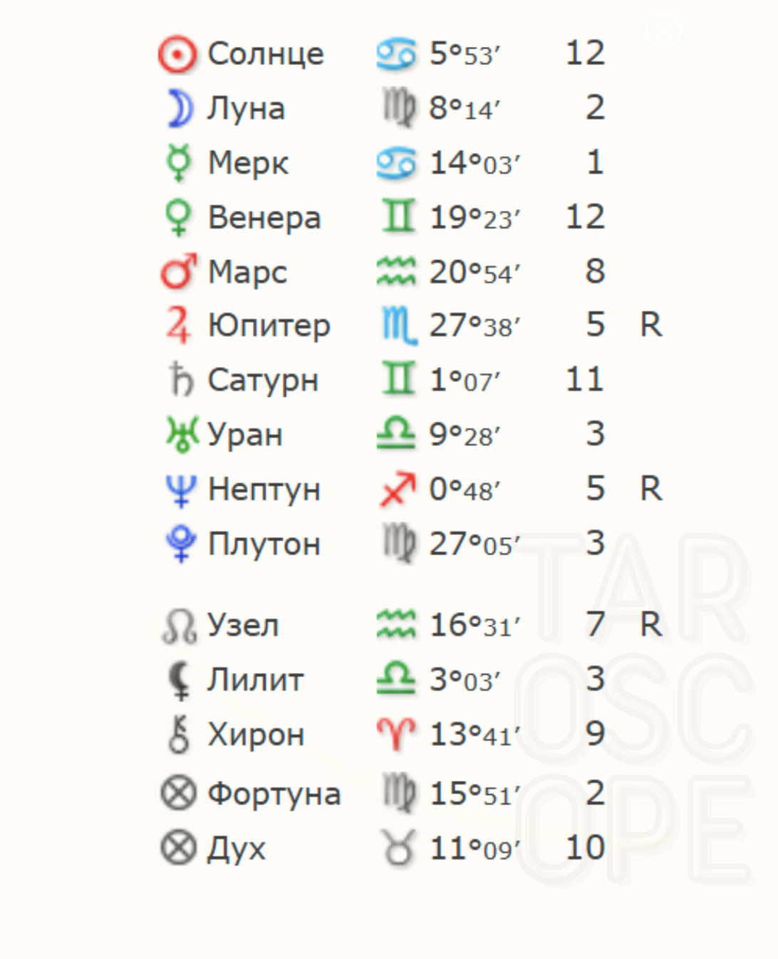 У Илона Маска эта карта такая же уникальная, как и его проекты. Эти данные раскрывают перед нами целую Вселенную влияний и энергий, которые формируют его личность. Солнце в знаке Рака наделяет Илона Маска чувствительностью, интуицией и глубокой эмоциональностью. Это делает его способным тонко улавливать потребности общества и заботиться о глобальных проблемах. Положение в 1 доме усиливает его харизму и лидерские качества. Ключевые черты: интуитивность, забота о близких, сильное чувство идентичности. Луна в Деве формирует у Маска аналитический подход к делам и внимание к мельчайшим деталям. Эмоции у него под контролем логики, что помогает избегать импульсивных решений. Положение в 3 доме делает акцент на важности общения, обучения и интеллектуальной активности. Ключевые черты: прагматизм, практичность, эмоциональная устойчивость. Асцендент в Раке делает Маска интуитивным и заботливым в глазах окружающих. Он умеет приспосабливаться к обстоятельствам и вызывает доверие. Ключевые черты: открытость, интуитивное понимание других людей. Этот аспект усиливает харизму Илона и делает его личность выразительной. Он притягивает внимание и легко влияет на окружающих. Оппозиция между Марсом и Сатурном создаёт напряжение между желанием действовать быстро и необходимостью соблюдать осторожность. Это может замедлять реализацию идей, но делает их более устойчивыми. Этот гармоничный аспект дарит Илону Маску вдохновение и веру в лучшее. Он умеет находить позитив даже в сложных ситуациях. Кармическая задача Маска — перейти от поверхностных идей к глубокой проработке глобальных проектов. Ему важно научиться системно работать над масштабными задачами. Маску важно не останавливаться на простых решениях, а углубляться в суть своих проектов. Натальная карта Илона Маска раскрывает уникальное сочетание чувствительности, логики и харизмы. Его путь — это баланс между мечтами и реальностью, между риском и стратегией. Возможно, именно звёзды подарили ему эту дерзость и целеустремлённость, которые делают невозможное возможным. Хотите узнать, какие энергии помогают вам добиваться успеха? Проект Taroscope.ru предлагает персональные астрологические и эзотерические услуги онлайн. Узнайте, какие планеты ведут вас к победам! 🔮 Узнать больше на Taroscope.ru 🔮 Подписывайтесь на наш telegram-канал с ежедневными гороскопами для каждого знака зодиака!