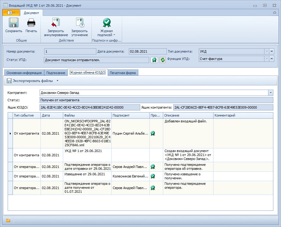 · обмениваться запросами на аннулирование документов и подписывать с обеих сторон.