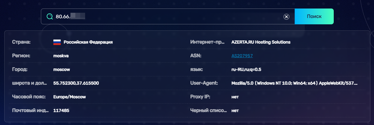 - У меня был ip:80.66.** .** согласно данным из открытых источников ip закреплен за Севастьевым А.Н., г. Одесса, Украина.