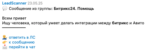 Теперь запросы в Telegram не теряются, бот LeadScanner находит клиентов в чатах и каналах Telegram, создает сделки и лиды и автоматически отвечает на запросы прямо из CRM.