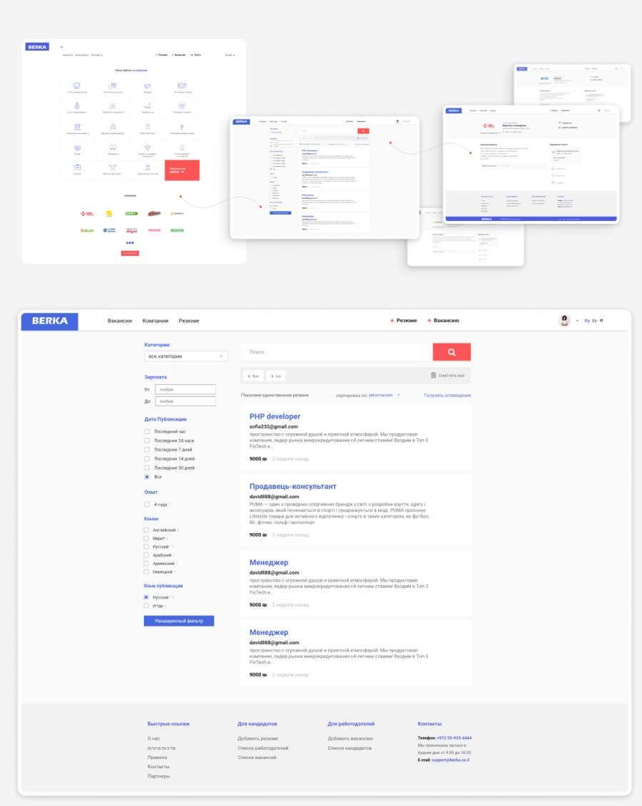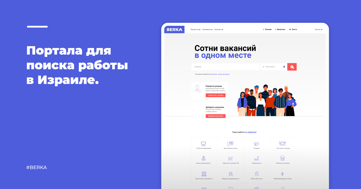 Разработали портал для поиска работы и подбору персонала в Израиле. Создали чистый дизайн, простую систему навигации, обеспечили функциональность и информативность сайта, реализовали удобную подачу вакансий и резюме.