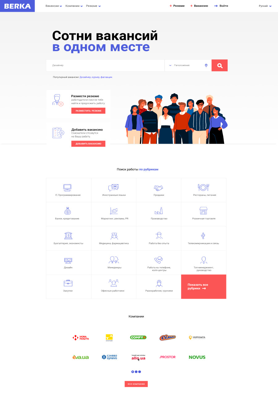 Дизайн был создан в чистом стиле с использование белого, красного и синего цветов, в фирменной стилистике. Реализация всех модулей закрывает потребности соискателя и работодателя. В тоже время администрация сайта имеет возможность контролировать каждого из них и не пропускать не качественный трафик на сайт. Сайт оптимизирован под поисковую выдачу и быстро грузится на любых устройствах.