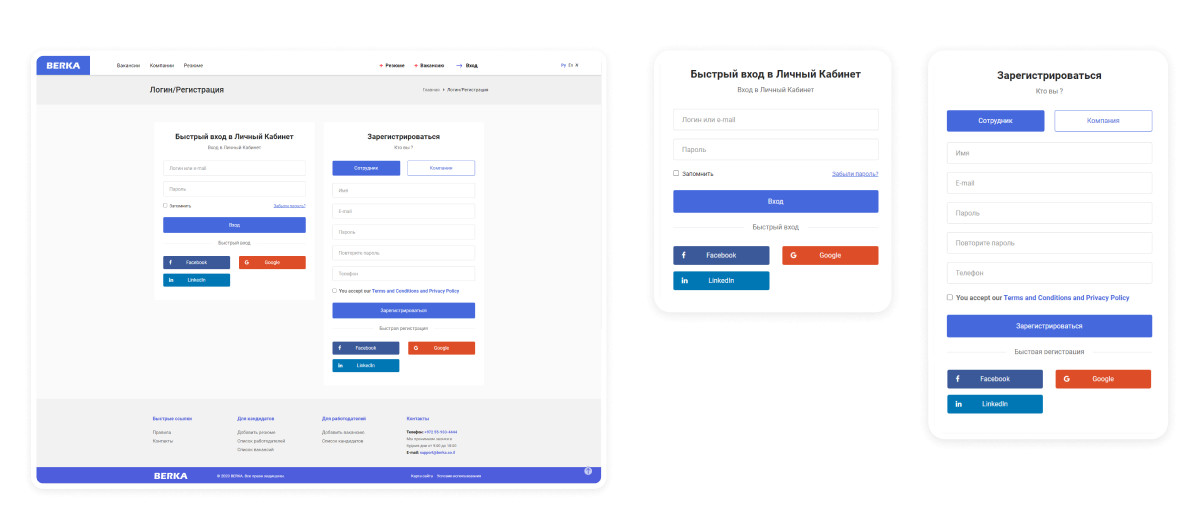 Чем проще тем лучше, отдельными требованием заказчика была возможность входа на сайт через Facebook и Google. Личный кабинет