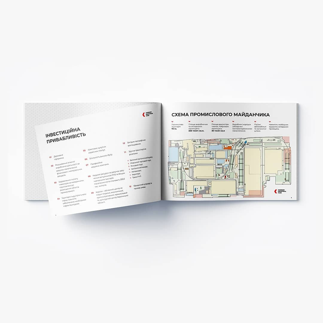 Для разработки презентации Индустриальный парк презентовал основные направления развития, а мы в свою очередь, реализовали дизайн, контент, перевод и рерайтинг. Презентация Херсонского индустриального парка была разработана на трех языках и в двух версиях, печатной издание и PDF для электронной рассылки и демонстрации на проекторе.