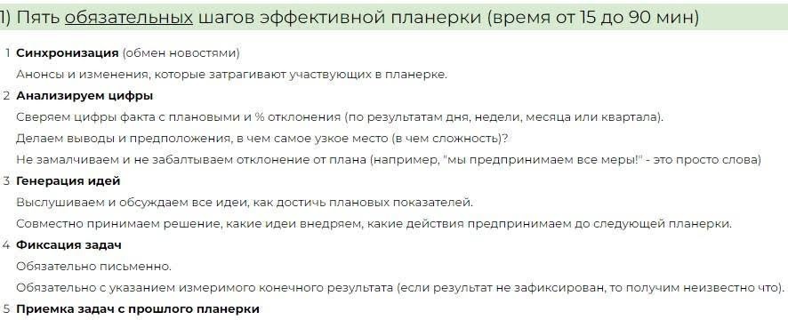 - С ТОП-менеджерами — 1 раз в неделю, в крайнем случае, 1 раз в 2 недели. Если периодичность реже, то вы теряете связь с подразделением и велика вероятность получить неожиданные «побочные эффекты» в будущем.