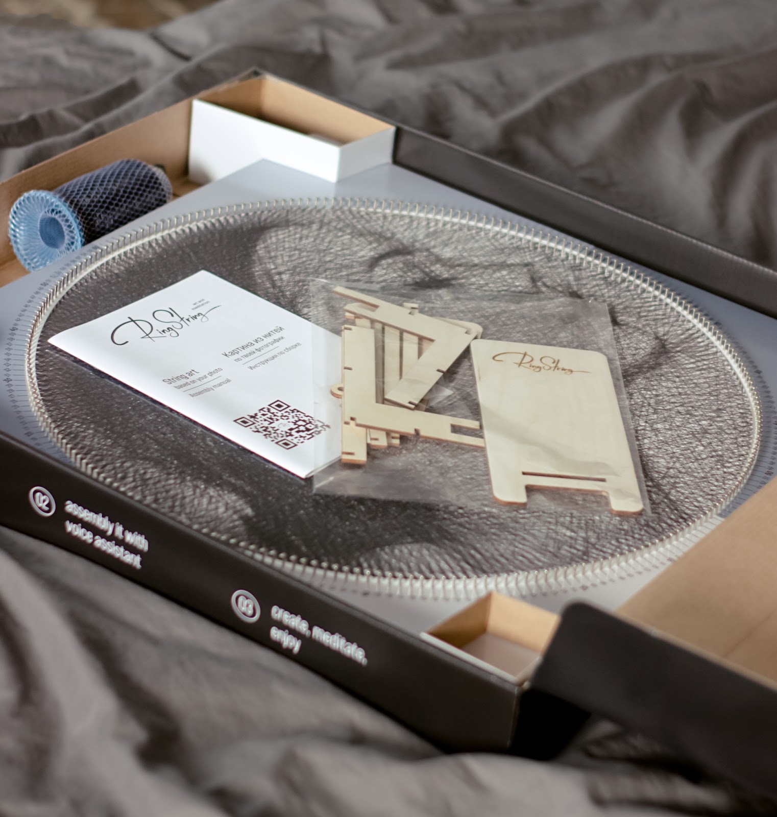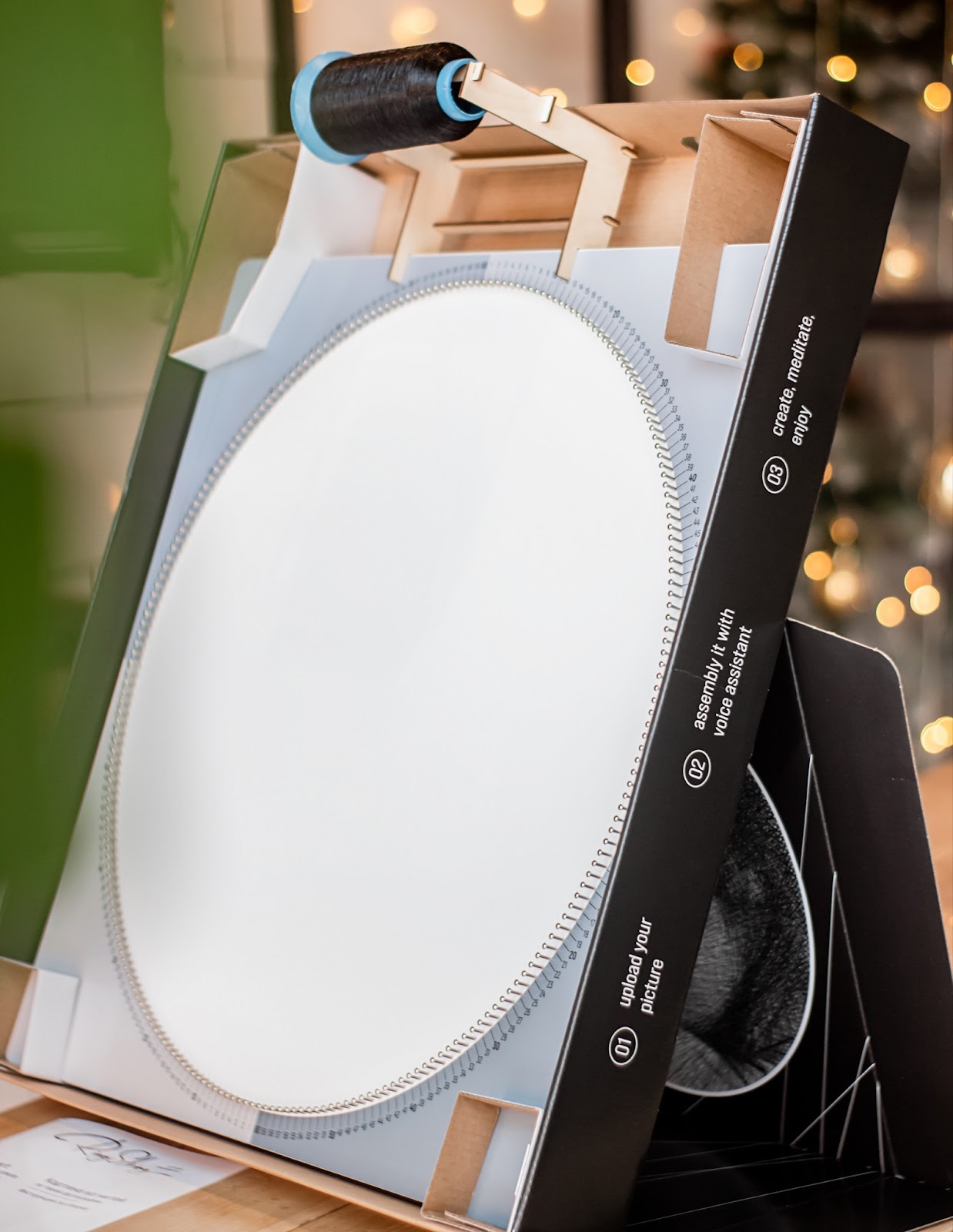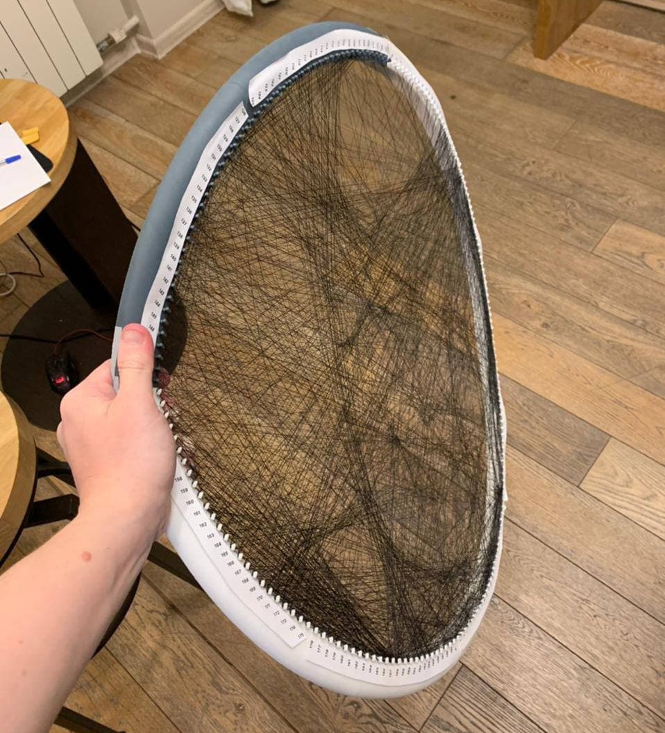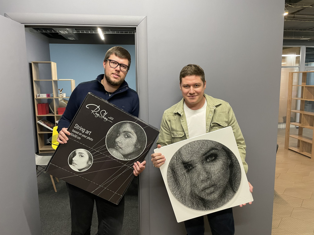 В статье я расскажу, как мы до этого додумались, трудно ли запускать производство в России и прорабатывать каждую мелочь. Картины из нитей — продукт эффектный, но не очень распространённый. В России на маркетплейсах не так-то и легко найти даже готовую картину, а наборов для творчества почти нет. У художников самоучек можно заказать готовую картину, но цены начинаются от 20 тысяч рублей. В Европе ещё дороже — от 400 евро. То есть если вы захотите повесить себе в спальню подобную картину по семейному фото, придётся отдать немаленькую сумму. Забегая вперёд, скажу, что наш набор стоит 5 тысяч рублей. В 2020 году мой партнёр Иван заказал у художницы из Беларуси картину из нитей за 20 тысяч рублей. Идея нам понравилась — в интерьере картина смотрелась очень необычно и привлекала внимание. Тогда мы работали над Mozabrick — конструктором, из которого можно было собрать любую фотографию. Мы решили, что было бы круто сделать что-то подобное и с картиной из нитей и начали думать над реализацией. Сделать софт на базе нашего конструктора Mozabrick не получалось — алгоритм был намного сложнее. Пришлось писать весь код с нуля. Решили делать не отдельное приложение, а оформить всё в веб-интерфейсе. Никто не будет хранить у себя приложение, которым будет пользоваться один или два раза. Процесс выглядит так: пользователь заходит на сайт, загружает фотографию, вводит код из коробки и получает пошаговую инструкцию по сборке. Мы привлекли разработчиков, с которыми уже работали, а весь софт нам в итоге обошёлся в несколько миллионов рублей. Сначала мы хотели сделать набор максимально компактным — это бы сильно упростило и удешевило логистику. Поэтому решили сделать так, чтобы набор собирался из нескольких частей в одно большое полотно. Первым прототипом был пластиковый обруч из четырёх частей. На нём уже были зубчики, за которые цеплялась нитка. Но даже самый укреплённый обруч не выдерживал — от натяжения нитей он сильно выгибался. Когда мы поняли, что идея сборной конструкции провалилась, решили делать обычную деревянную основу. Мы договорились с заводом в Московской области и с весны 2021 года начали работать над прототипом. Основу начали делать из МДФ размером 50 на 50 сантиметров. Если делать размер меньше, то картина будет не такая детализированная и красивая. А слишком большой размер делает неудобной логистику — даже покупателю будет сложно положить большую коробку в машину, чтобы отвезти подарок на день рождения другу. Большие сложности были с гвоздями, за которые цепляются нитки. Они должны быть гладкими, ровными, одинаковой формы, высоты и цвета. Гвозди не должны рвать нити и красиво смотреться в интерьере. В одном наборе 240 гвоздей, а за сутки планировали делать 250 наборов. То есть на каждый день нам надо 60 тысяч гвоздей. Российские производители не могли обеспечить нас красивыми и ровными гвоздями в таком количестве, поэтому мы остановились на варианте с немецкими гвоздями. После недавних событий и санкций для нас практически ничего не изменилось: гвозди из Германии доставляют без проблем. Они, разумеется, подорожали из-за курса валют, но с логистикой пока всё в порядке. Нитки для набора производят в России. Они хорошего качества — крепкие и их тяжело порвать. Проблема только в том, что нам привозят нить на одной большой катушке и приходится наматывать её на