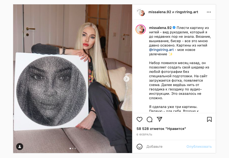 Поэтому прямых конкурентов у нас нет. Наш набор стоит в несколько раз меньше, ничем не хуже по качеству, а собрать можно абсолютно любую картину по любому дизайну.Как мы решили создать RingString