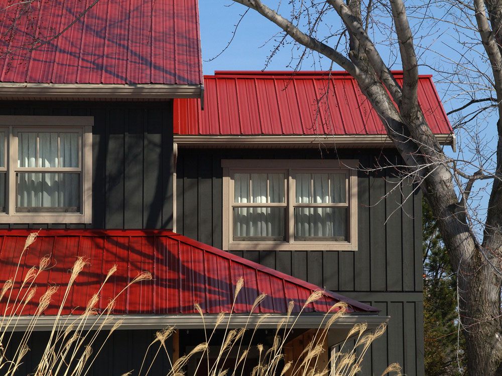 Фасадные краски для дерева заслуживают отдельного внимания. Помимо бюджетных акриловых составов для древесины в последнее время появляются инновационные материалы на силикон-акриловой основе, например, Brite Flexx. Добавки для защиты от УФ-излучения и биокоррозии делают покрытия стойкими и надежными при различных климатических условиях. Силиконовые краски. Премиальный сегмент фасадных покрытий с высокой эластичностью. Содержат силиконовые смолы, которые обеспечивают водо- и грязеотталкивающие свойства при сохранении паропроницаемости. К недостаткам относят сложность колеровки и стоимость, что впрочем окупается в долгосрочной перспективе (срок службы 10-15 лет). Силиконовые фасадные краски подходят для: Ограничения применения. Краски на основе силикона не рекомендуются для металлических поверхностей из-за излишней паропроницаемости, а для остальных поверхностей требуют идеально подготовленного основания для максимальной эффективности. Силикатные краски. Краски на основе калиевого жидкого стекла (силиката калия) по свойствам сходны с силиконовыми составами. Они обладают исключительной паропроницаемостью, стойкостью к ультрафиолету, долговечностью, предотвращают рост плесени. Их также успешно применяют для окрашивания минеральных оснований (бетон, штукатурку, кирпич). После высыхания образуют не пленку, а минеральное покрытие, которое фактически становится частью основания. К недостаткам составов относят ограниченную цветовую гамму (за счет минеральных пигментов ярких кислотных цветов не будет), а также требовательность к подготовке поверхности и низкую эластичность. Как мы видим, для металла из указанных выше составов подходят только акриловые краски, и то с оговорками. Действительно, главный враг металла — коррозия, чему не подвержены другие материалы. А значит в задачу фасадной краски для металла входит создание надежного барьера от кислорода и влаги. При этом, если ржавчина уже появилась, ее в большинстве случаев необходимо удалить (механически или преобразователем ржавчины), и обезжирить поверхность. К лучшим типам покрытий для металла относят: Перед окрашиванием металлических поверхностей необходимо провести грунтование, если вы не применяете составы 3-в-1. От него зависит долговечность покрытия. Для этого используют грунты с антикоррозийными добавками, такими как цинк или фосфаты. Подбирают их в зависимости от материала: для черных металлов подходят составы с преобразователями ржавчины, а для оцинкованных поверхностей — специальные праймеры с адгезионными компонентами. Чтобы сохранить надежную защиту, окрашенные конструкции рекомендуется обновлять каждые 4–8 лет. Такой вопрос возникает, если нужно покрасить одновременно предварительно обработанные дерево и металл в один цвет. Большинство эмалей для металла не подойдут для этой задачи, так как полученная после их высыхания жесткая пленка не способна «дышать» вместе с деревом, и не выдержит естественных деформаций древесины при изменении влажности. Это приведет к растрескиванию покрытия, особенно на открытом воздухе. Но есть универсальные составы — это алкидные пентафталевые эмали (ПФ-115), образующие более эластичную пленку, которая не растрескается и надежно защитит древесину. Еще вариант — жидкая резина, которой можно окрашивать не только