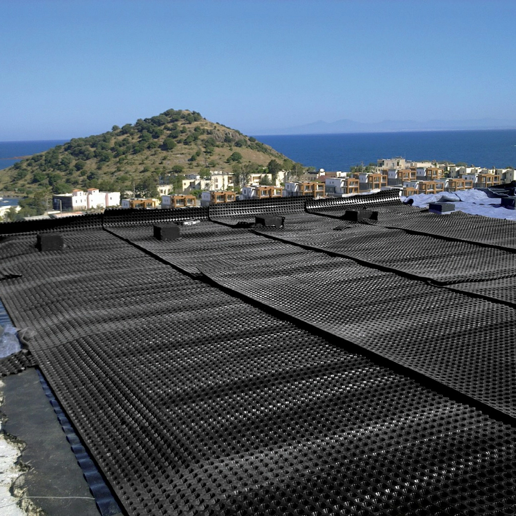 Геомембрана, в свою очередь, является экономически более выгодной альтернативой, так как не нуждается в расходах на дополнительные компоненты и транспортировку. При этом она обеспечит равномерное распределение нагрузок за счет своей эластичности и структурированной поверхности. Это особенно важно на участках с неравномерным грунтом, где традиционная бетонная стяжка может давать трещины и деформироваться.