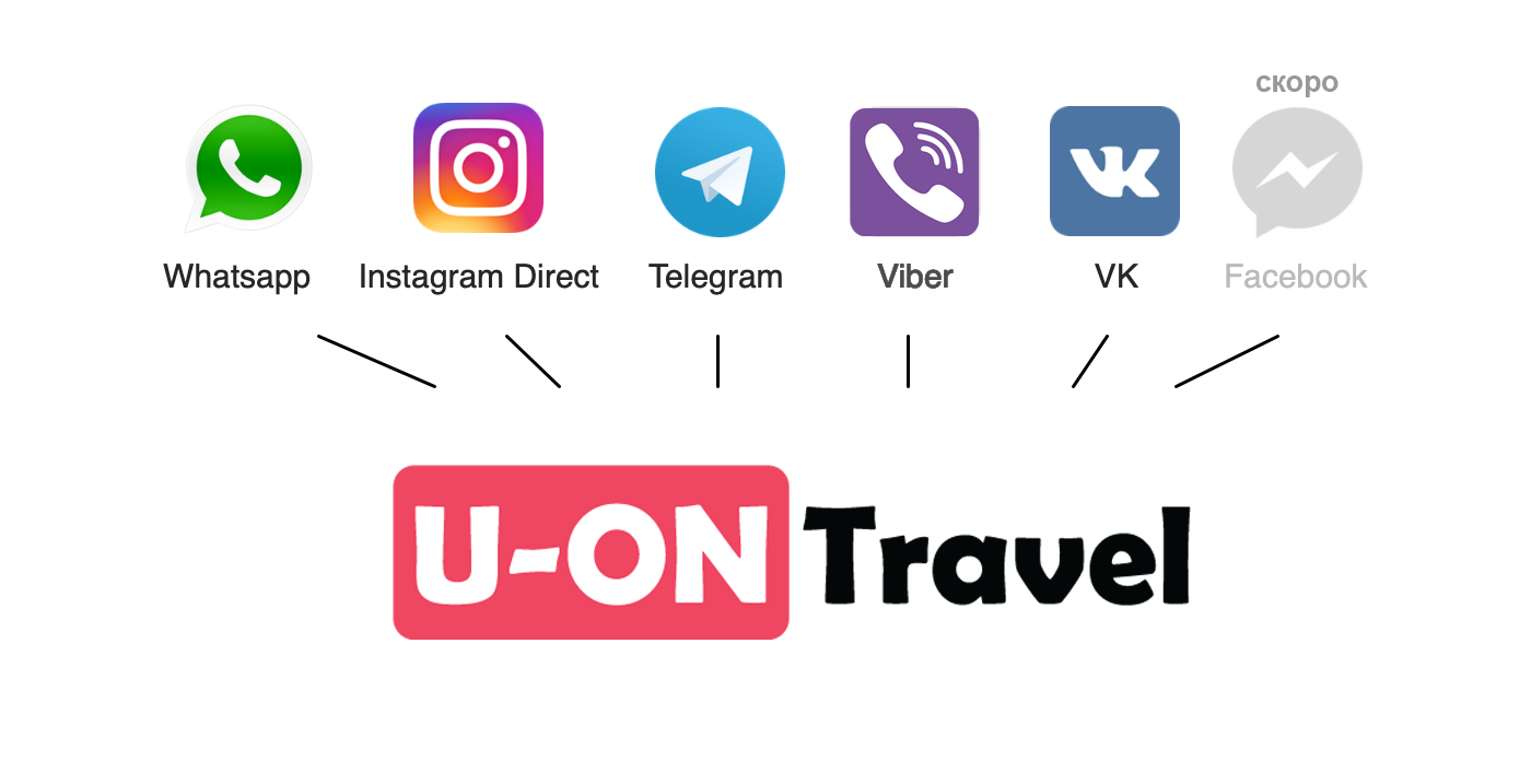 - Вы сможете не просто в 2 клика отправлять сообщения туристам в социальные сети и мессенджеры, но и получать от них ответы внутри U-ON.Travel.