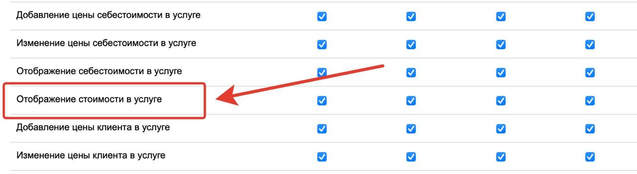 19.09.2022. Добавлено новое право доступа «Отображение стоимости в услуге». Если вы работаете со стажерами или фрилансерами, можно для них отключить это право.