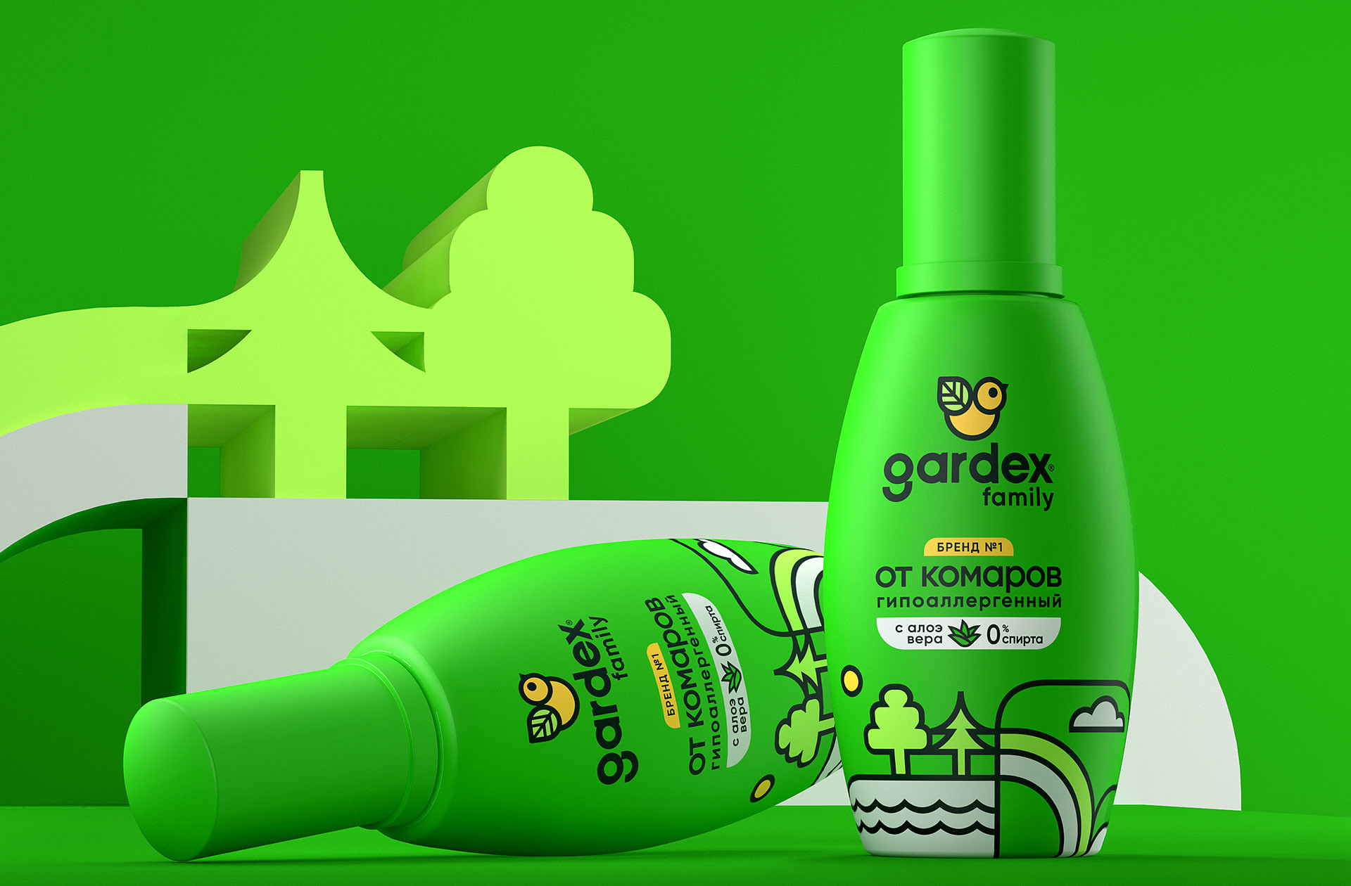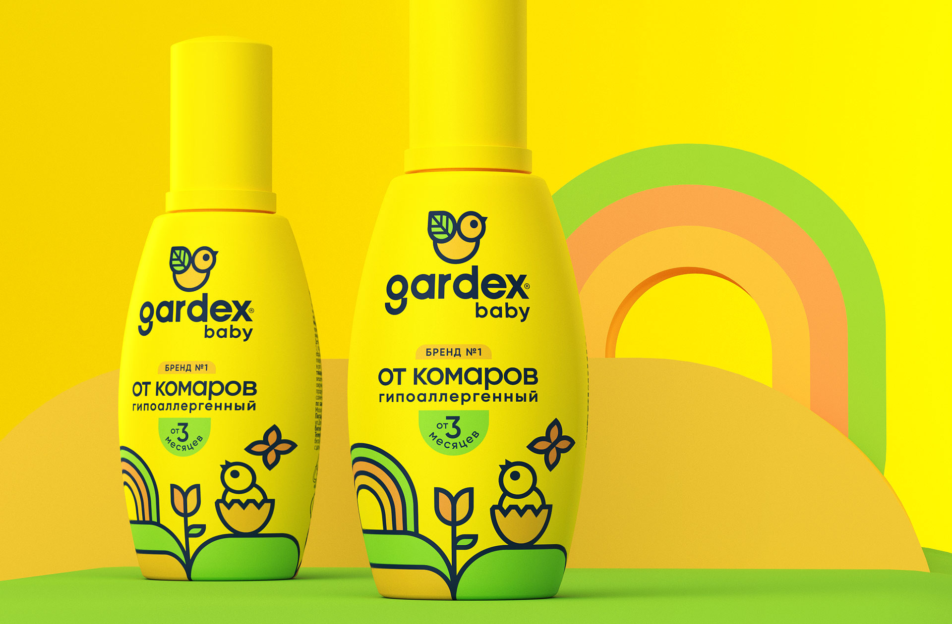 При выборе цветового кодирования преемственность была очевидной — потребитель привык к текущим цветам и был категорически не готов к радикальным решениям. Нужно было отстраиваться не цветом, а чем-то другим. Идеальным решением стало ввести графический пейзаж в нижнюю часть упаковки. Геометричный outline-стиль «птички» из логотипа стал основой графики. Иллюстрации в таком стиле органично ложатся на все линейки. Деревья, цветы, радуга,луга — все элементы пересекаются и соединяются. Пейзажи для линеек BABY и FAMILY цветные, для EXTREME — монохромные, с серебристыми «акцентами». Таким образом был сформирован один из главных brand cues, задающий стиль всей упаковке. Природные мотивы также транслируют безопасность — одно из ключевых преимуществ бренда.