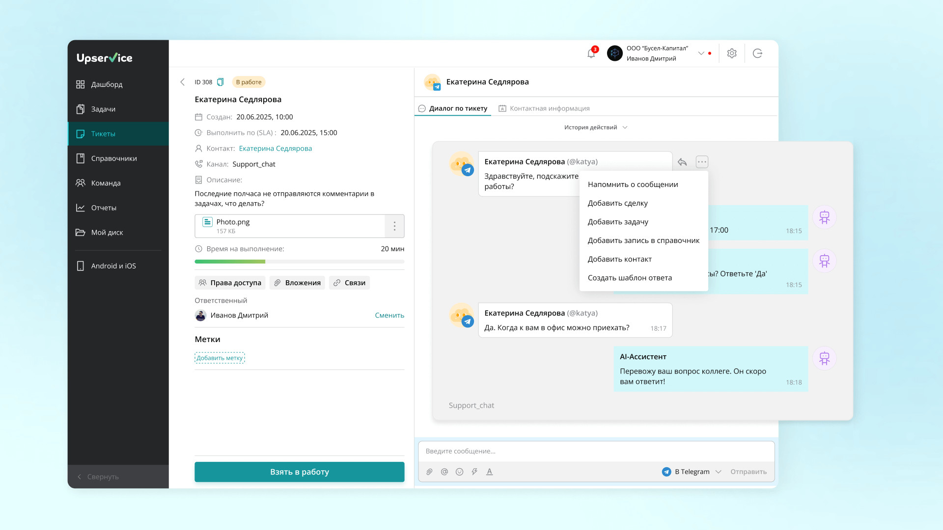«А если не зайдет?» — стартуем с одного канала (например, почты), остальное добавляется по шагам. IT-аутсорс, сервис и монтаж, аренда/эксплуатация, ЖКХ, клининг, B2B-сервисы с заявками от клиентов и подрядчиков. Заполните короткую форму. Мы свяжемся и поможем запуститься и перенести текущие процессы. Пользуетесь годом Upservice, оплатив 6 месяцев. Предложение действительно только с 8 по 14 сентября 2025. Если удобнее, то пишите в Telegram, ответим оперативно.