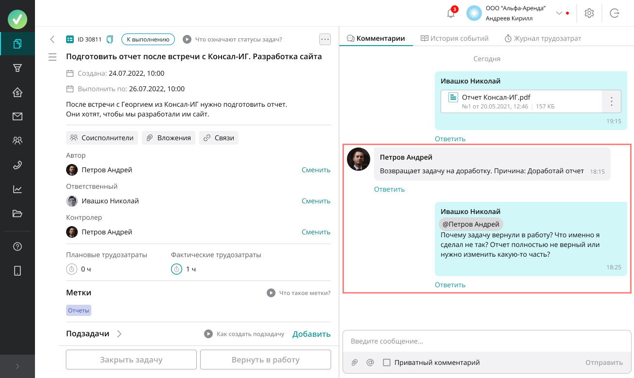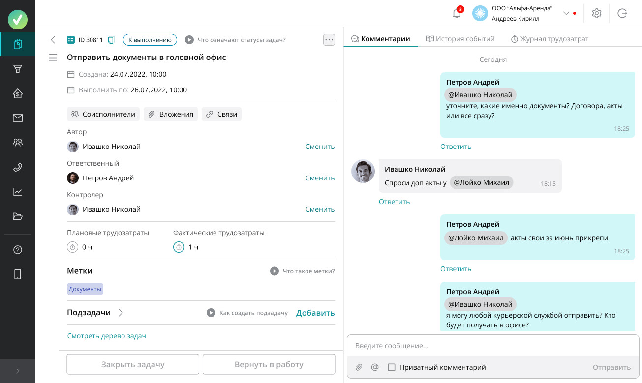 Правило 1. Название должно говорить исполнителю о цели задачи и максимально передавать ее суть. Ни в коем случае не используйте общие фразы и короткие заголовки. Например, «Договор», «Почта», «Сделай работу» и т.д. Потому что из такого названия не ясно, о чем конкретно задача.