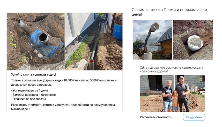 Наш клиент — компания, осуществляющая продажу и установку автономных систем канализации по всей России. С целью привлечения новых клиентов она обратилась к нам для тестирования рекламных возможностей ВКонтакте.