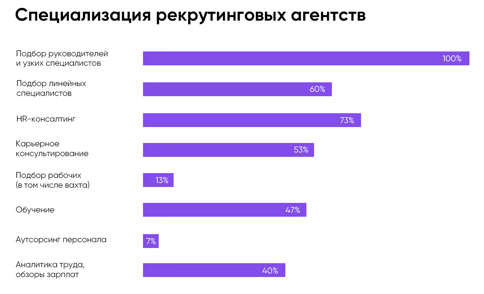 Работа с разнотипными источниками позволила сформировать целостное видение на рынке рекрутинга сегодня и наметить стратегические перспективы для клиента.