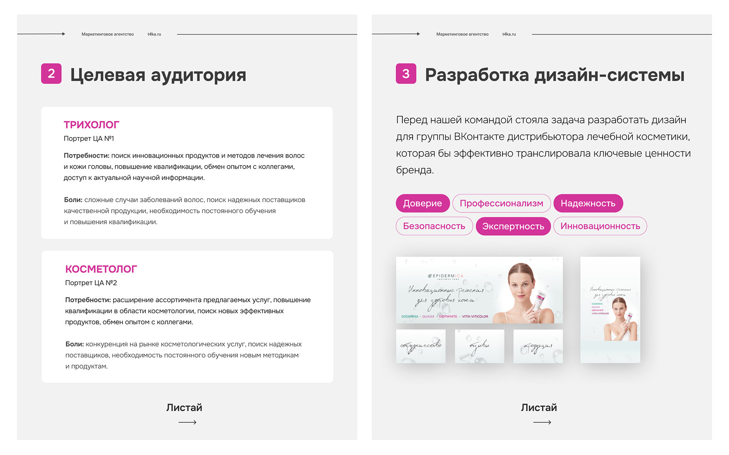 *Перед нашей командой стояла задача разработать дизайн-систему для группы ВКонтакте дистрибьютора лечебной косметики, которая бы эффективно транслировала ключевые ценности бренда.
