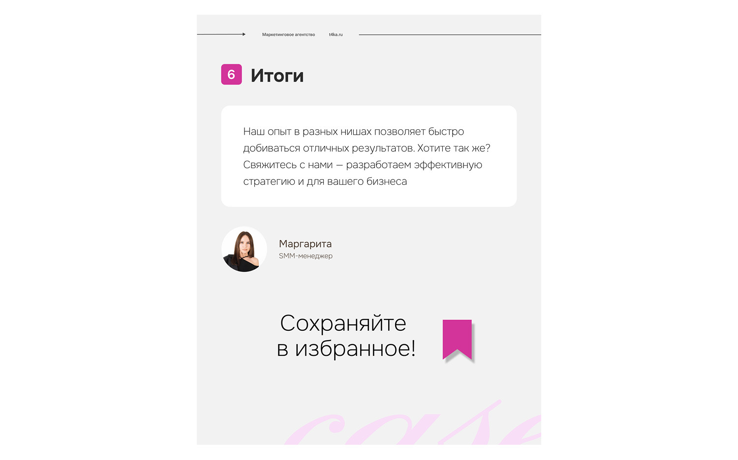 Провели анализ результатов продвижения, выявили наиболее эффективные форматы и темы контента, и внесли корректировки в стратегию для достижения максимальной эффективности.