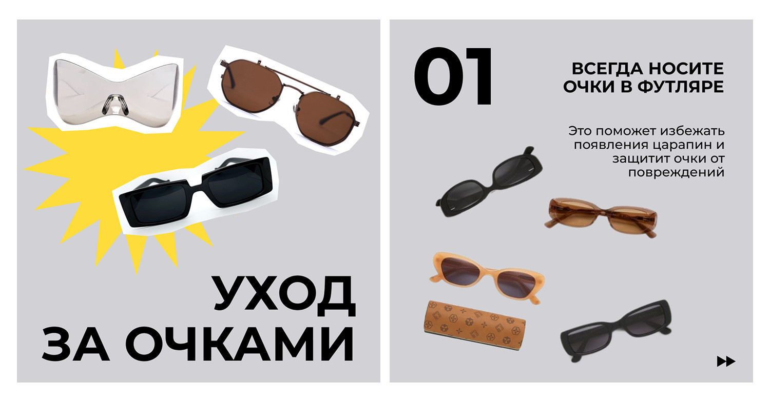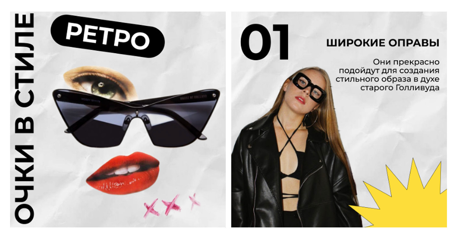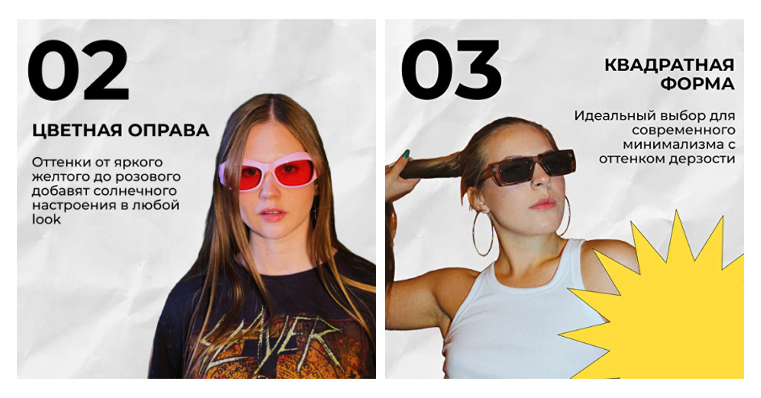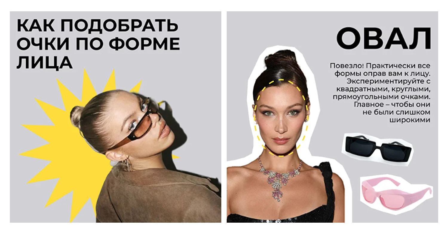 2. Играем со словами, экспериментируем с форматами и удивляем аудиторию. 3. Мы не боимся шутить и иронизировать, ведь «улыбка» — лучший способ расположить к себе. 4. Знаем все об аксессуарах и очках и щедро делимся своими знаниями с аудиторией, помогая сделать выбор. Мы не просто продаем товар, мы создаем эмоцию. И это, поверьте, гораздо эффективнее. Что скажете? Перед нашей командой стояла задача разработать дизайн-систему для группы ВКонтакте магазина модных молодежных аксессуаров, которая бы эффективно транслировала ключевые ценности бренда. Было важно создать визуальный язык, вызывающий ощущение стиля, современности, динамики и легкой игривости, отражающих дух молодости и актуальных трендов. В качестве основного цвета выбрали желтый, а остальные элементы — черные и белые. Желтый — цвет энергии, оптимизма, радости и творчества. Он ассоциируется с молодостью и активностью. Кроме того, желтый цвет отлично контрастирует с черным и белым, что делает контент более читабельным и акцентирует важные элементы. С проектом ознакомились, целевую аудиторию проанализировали, с tone of voice определились, социальные сети упаковали. Переходим к самой эстетичной и интересной части кейса- создание контента для социальных сетей. Да- да, мы знаем, ниша аксессуаров это простор для креатива и фантазии. Поэтому приводим примеры постов, которые хорошо зашли нашей аудитории: 1) Мы пошли дальше простого анонсирования новинок. Вместо сухого перечисления ассортимента мы создавали вдохновляющие подборки аксессуаров, идеально подходящих к определенным стилям. Например, вот здесь мы рассказывали о том, как подобрать идеальную пару очков для создания неповторимого ретро-образа. 2) А что насчет акций? Как их можно креативно подать? Взять, к примеру, наши интригующие печеньки с предсказаниями. Сама идея предсказаний и загадок возвращает нас в беззаботное детство, пробуждая любопытство и желание узнать, «а что же там?». 3) Выбрать аксессуары онлайн — задача не из лёгких. Часто бывает сложно представить, подойдёт ли та или иная вещь именно вам. Чтобы упростить этот процесс, мы давали аудитории рекомендации по выбору очков в зависимости от формы лица. И вместо скучных, общих советов мы использовали образы любимых селебрити в качестве наглядных примеров. 4) Мы демонстрировали, что наш ассортимент — это воплощение последних трендов, которые выбирают топовые модели и инфлюенсеры. Ведь кто не хочет быть на пике моды и примерить на себя стильный образ, ощутив себя частью мира красоты и стиля? Мы дополнили всё это ярким и цепляющим контентом, которым хочется делиться с друзьями. В среде высокой конкуренции важно не просто формально присутствовать в социальных сетях, а создавать целое сообщество, объединенное общими интересами и любовью к стилю. Правильно подобранная стратегия, креативный подход и фокусировка на трендовых форматах контента могут творить чудеса и значительно увеличить трафик в офлайн-точку, даже при ограниченном бюджете. Главное — понимать свою целевую аудиторию и знать, как ее зацепить! Ну а теперь делимся результатами нашей работы за 2 месяца: ОХВАТЫ +108% ПРОСМОТРЫ + 72% ПОСЕЩАЕМОСТЬ В ОФЛАЙН-ТОЧКЕ +47% Готовы построить долгосрочные отношения с нами и вывести свой бизнес на новый уровень? Команда «В точку» разработает самые эффективные стратегии для ра