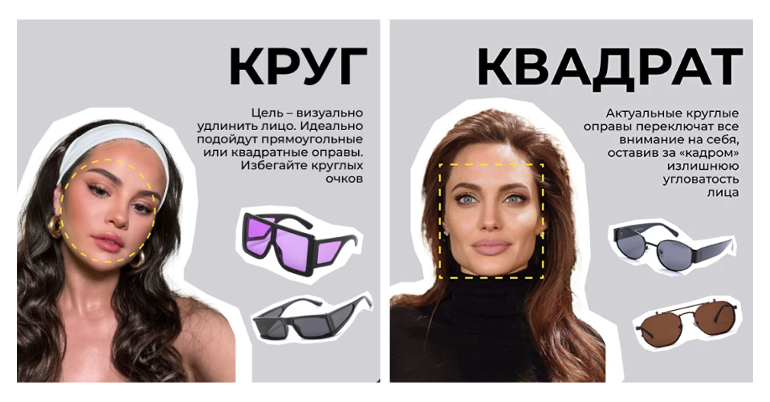 Мы можем создавать контент, релевантный каждому из этих интересов. Очки для вождения, стильные аксессуары для вечеринок, элегантные модели для офиса, яркие и необычные — для студентов.