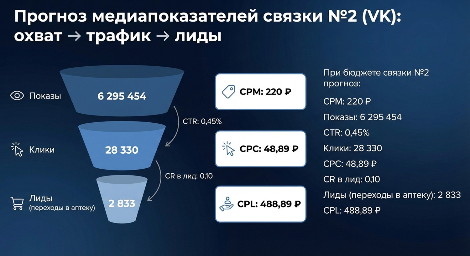 Если стоимость лида в одном канале превысит 500 ₽, предусмотрен механизм мгновенного перевода бюджета в более дешевые ПромоСтраницы или РСЯ.